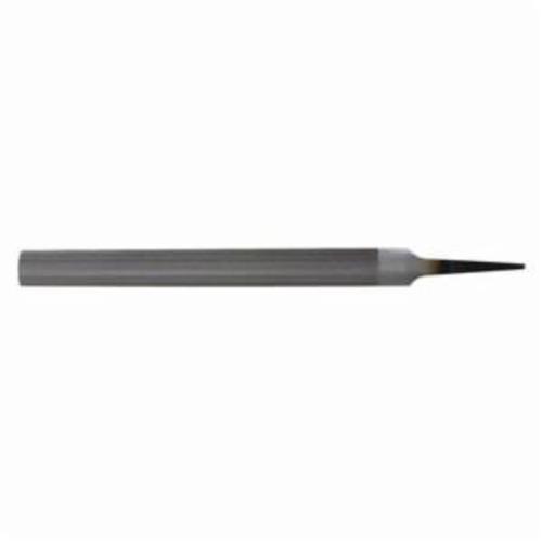 The Nicholson half-round hand file has one flat side with double-cut American pattern teeth and one curved side with single-cut American pattern teeth for use on flat and curved surfaces. It has double-cut American pattern teeth on the flat side for rapid material removal and single-cut teeth on the round side for finishing, sharpening, and deburring. The tang can be used with an optional handle for secure gripping (sold separately). Hand files are used to remove material and smooth and shape workpieces. They have forward-facing cutting teeth and cut when pushed over either a stationary or rotating workpiece. Single-cut teeth have single rows cut diagonally across the width of the file. Double-cut teeth have two sets of rows cut in opposite directions. American pattern files have three coarseness grades. Coarse, also known as bastard cut, is suitable for efficient, heavy material removal where finish is not a concern. Medium, also known as second cut, offers average material removal and finish quality. Fine, also known as smooth cut, provides the smoothest finish. Swiss pattern files have eight coarseness grades, from 00 (coarse), 0 (medium), and 1 to 6 (fine to finest), offering a smoother, more precise finish than equivalent American pattern files. Nicholson manufactures hand tools and power tool accessories. The company is headquartered in Sparks, MD.