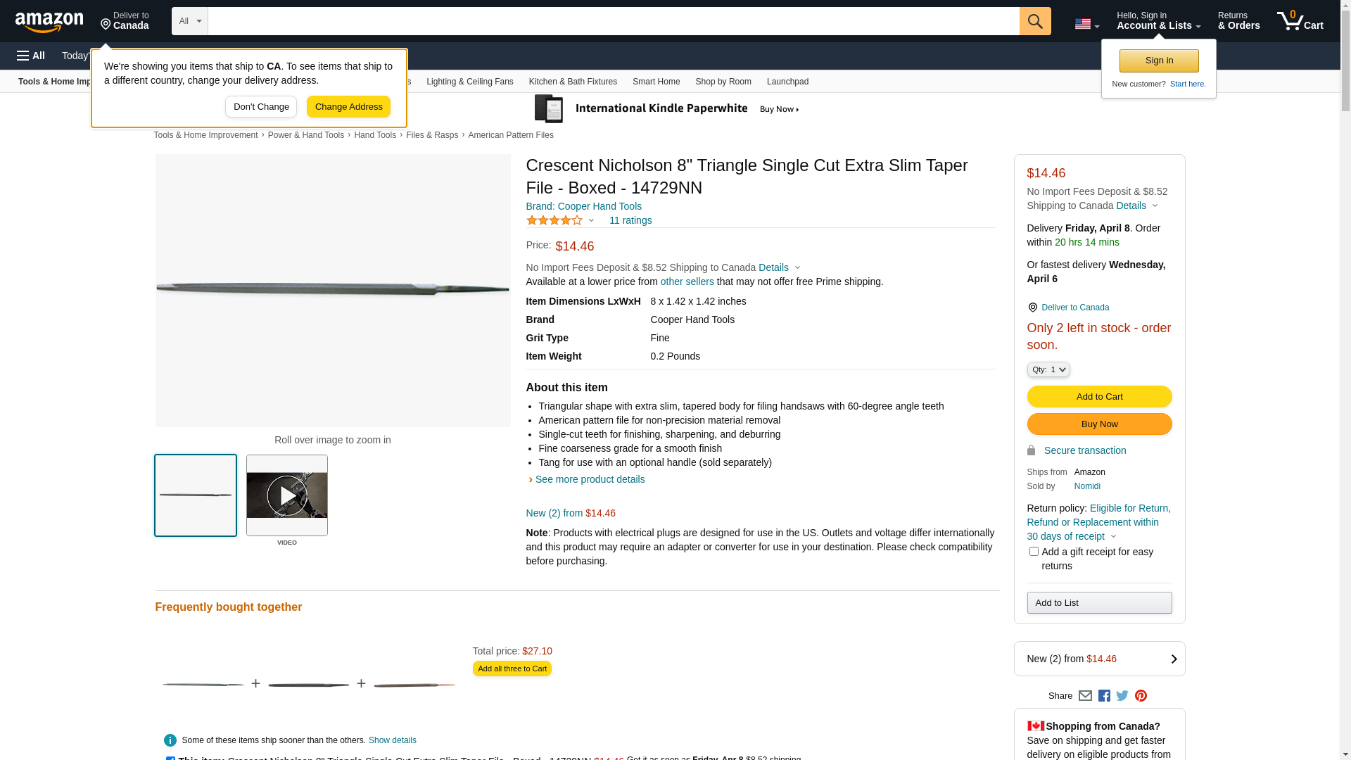 | ToolUp.com | NICHOLSON 14729N | 1 | 1 | 1 @ $6.31 | |