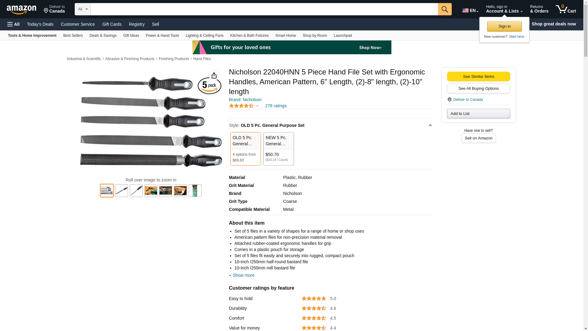 | Feature | Set of 5 files in a variety of shapes for a range of home or shop uses |