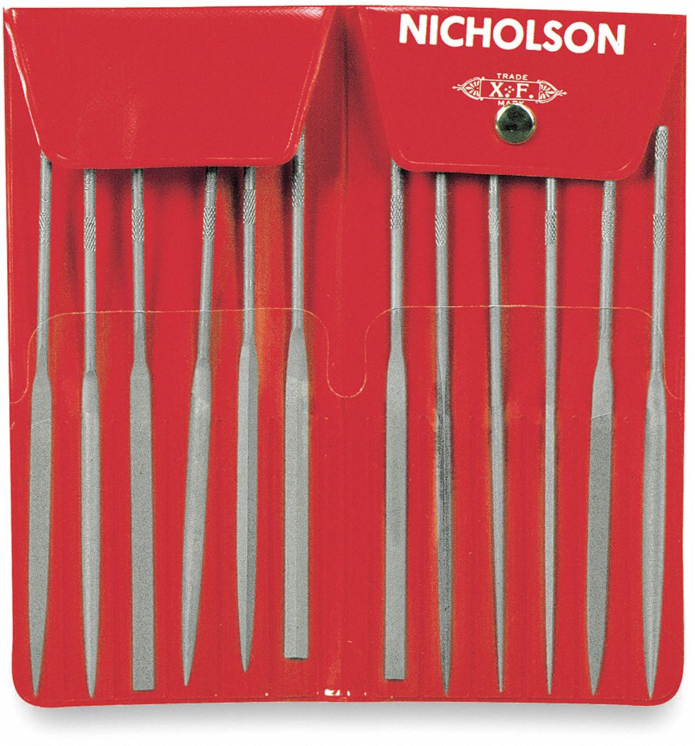 <p>Needle File Set, Swiss Pattern, Number of Pieces 12, Natural Finish, Length 5-1/2 In., Cut Type 2, Profile Shape Square, Half Round, Round, Profile Name Equaling, Flat, Joint, Knife, Marking, Crossing, Slitting, Three Square Files, Pouch, Handle Design Round Knurled, Includes 5-1/2 In. Barrette, Equaling, Flat, Half-Round, Joint, Knife, Marking,Crossing, Round, Slitting, Square, and 3 Square Files, Pouch</p><p><b>Specification: </b><ul><li>Item: Needle File Set</li><li>Number of Pieces: 12</li><li>Profile Shape: Square, Half Round, Round</li><li>Profile Name: Equaling, Flat, Joint, Knife, Marking, Crossing, Slitting, Three Square Files, Pouch</li><li>Pattern: Swiss</li><li>Includes: 5-1/2" Barrette, Equaling, Flat, Half-Round, Joint, Knife, Marking,Crossing, Round, Slitting, Square, and 3 Square Files, Pouch</li><li>Finish: Natural</li><li>Length: 5-1/2"</li><li>Handle Design: Round Knurled</li><li>Cut Type: 2</li></ul></p>
