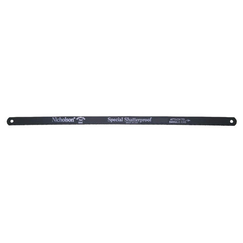 The Nicholson Solid Flexible Carbon Steel Hacksaw Blade features a good balance of wear resistance and mechanical shock absorbing properties. These blades are virtually unbreakable. Always use with caution.