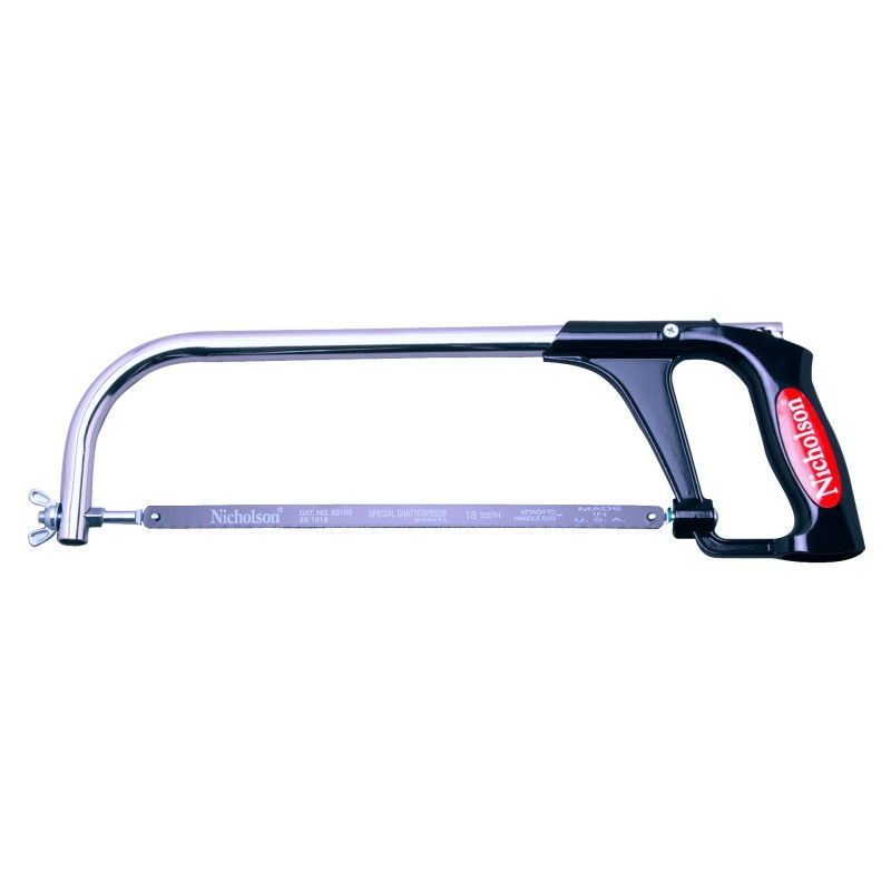 The Nicholson Economy Hacksaw is an ideal for use on a wide variety of everyday jobs. The ergonomic handle ensures a strong and safe grip. Always use with caution.