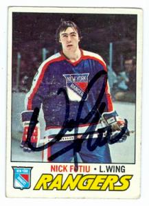 Nick Fotiu autographed hockey card (New York Rangers) 1977 Topps No.11 Poor Condition