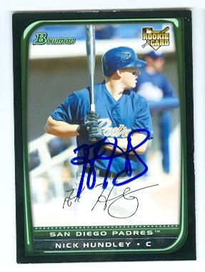 Nick Hundley autographed baseball card (San Diego Padres) 2008 Topps Bowman No.BDP22 Rookie Card