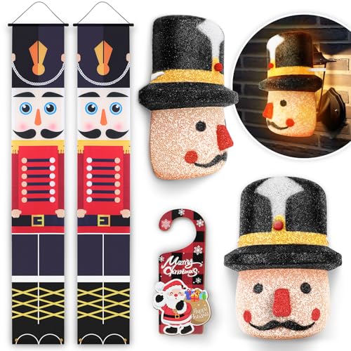 nicknack Christmas Porch Light Covers with Nutcracker Porch Banner & Christmas Door Sign for Outdoor Porch Holiday Decorations, Holiday Light Cover 5 PCS - Smoke Home & Garden