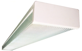 This sturdy 2-Light 32-Watt T8 wraparound is manufactured with 20-Gauge steel and a clear prismatic acrylic lens. Features 120-Volt energy-saving electronic ballast and an acrylic lens that blocks 80% of UV at 400 nm. Easy surface mount installation.