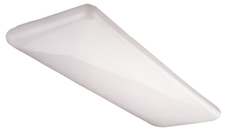This sturdy 4-Light 32-Watt T8 modern wraparound is manufactured with 20-Gauge steel and a white cloud design acrylic lens. Features 120-Volt energy-saving electronic ballast, a damage-resistant acrylic lens that blocks 80% of UV at 400 nm and Lens-Locks. Comes with 3 push-in wire connectors for easy installation.