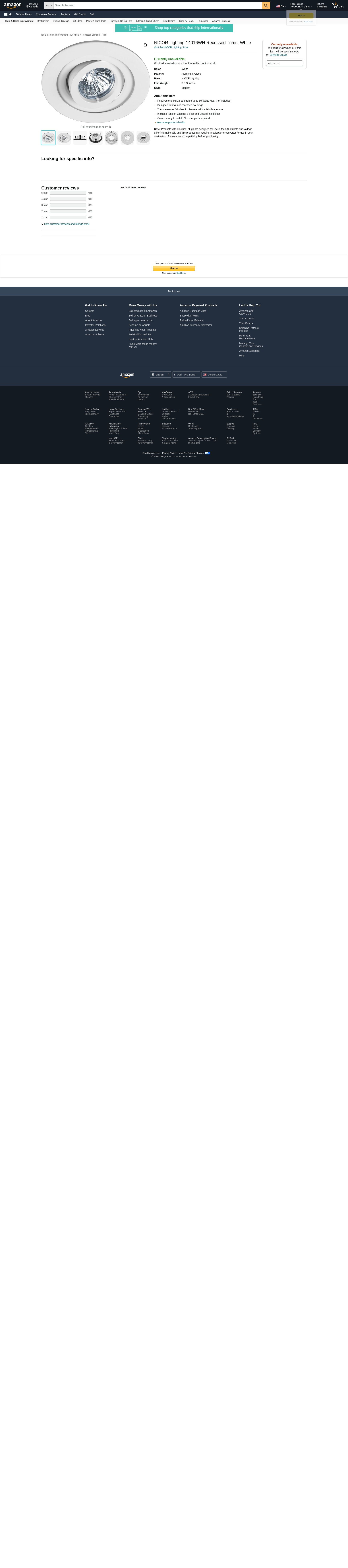 NICOR Lighting 14016WH Recessed Trims, White