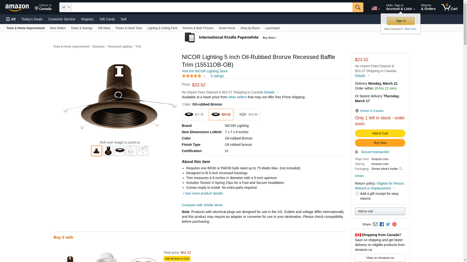 ![]() Lighting Supply | 15511OB-OB | 1 | 1 | 1 @ $30.68 |