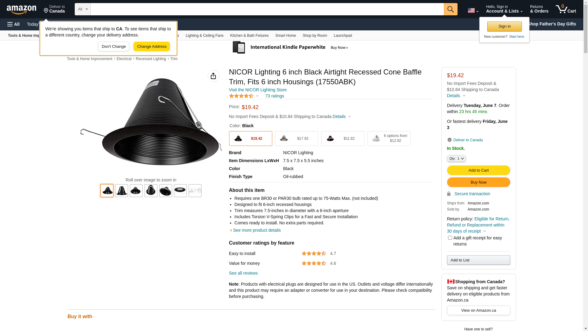 NICOR Lighting 17550ABK, 6-Inch, Black