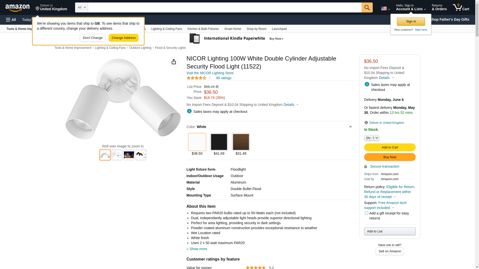 - Requires two PAR20 bulbs rated up to 50-Watts each (not included)