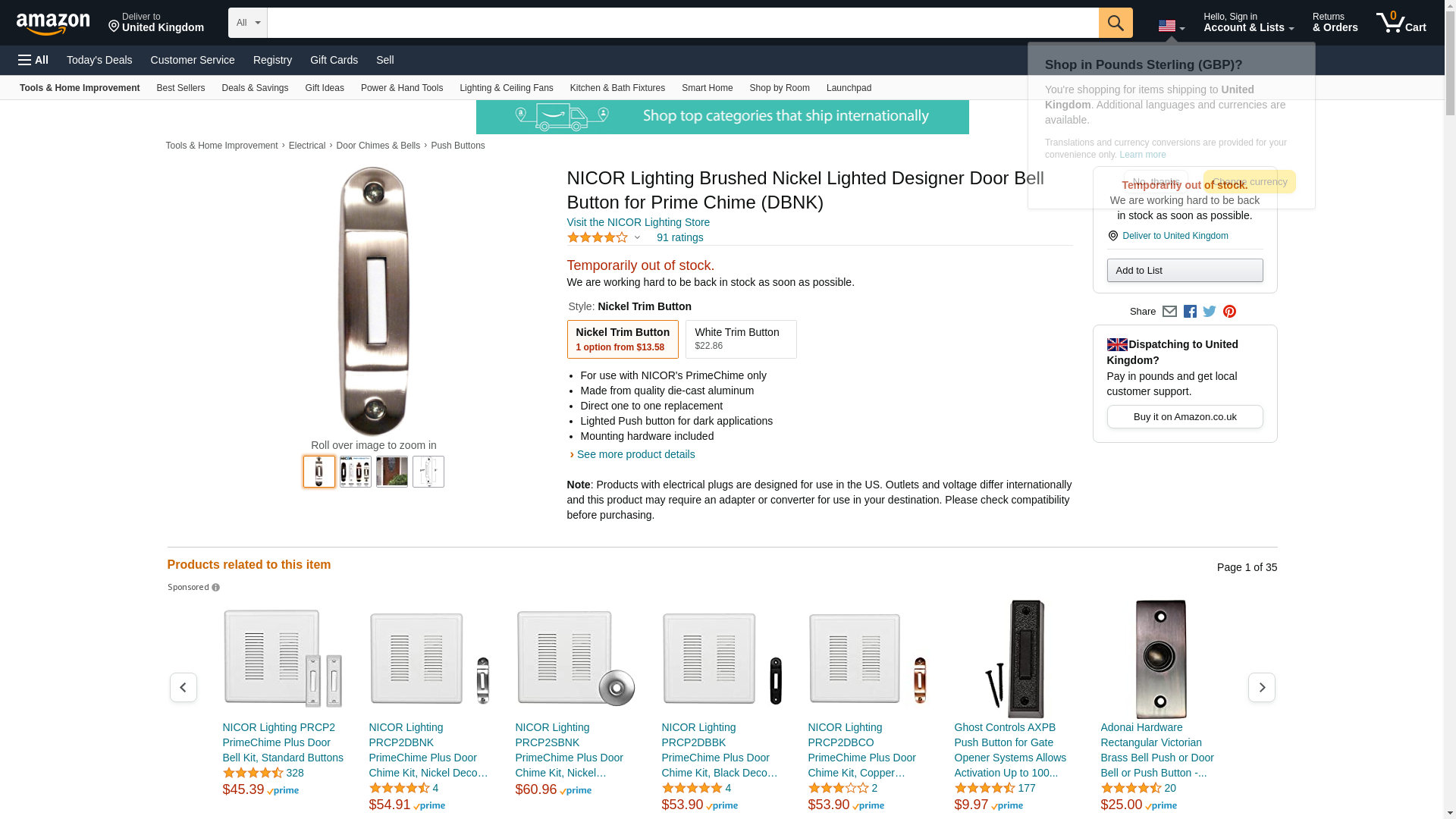 NICOR Lighting Black Lighted Designer Door Bell Button for Prime Chime (DBBK)
