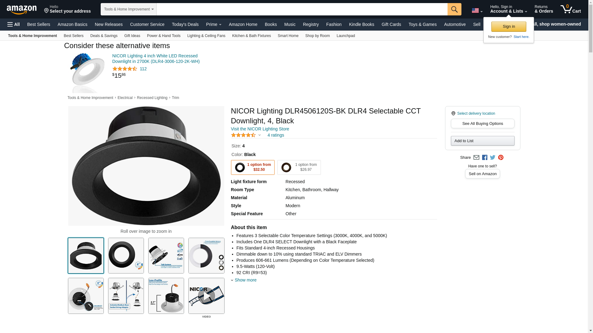 NICOR Lighting DLR4506120S-BK DLR4 Selectable CCT Downlight, 4, Black