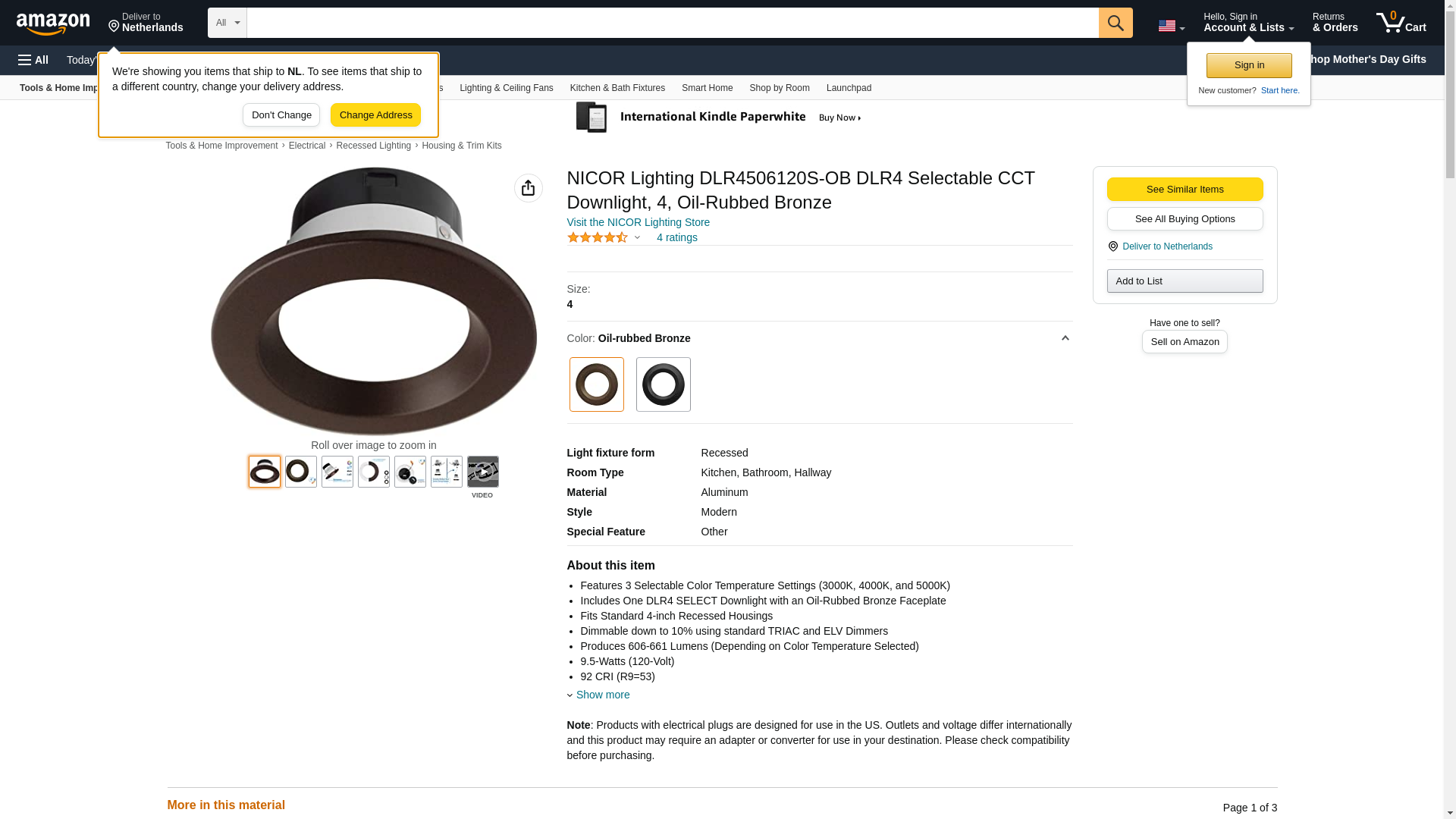 NICOR Lighting DLR4506120S-OB DLR4 Selectable CCT Downlight, 4, Oil-Rubbed Bronze