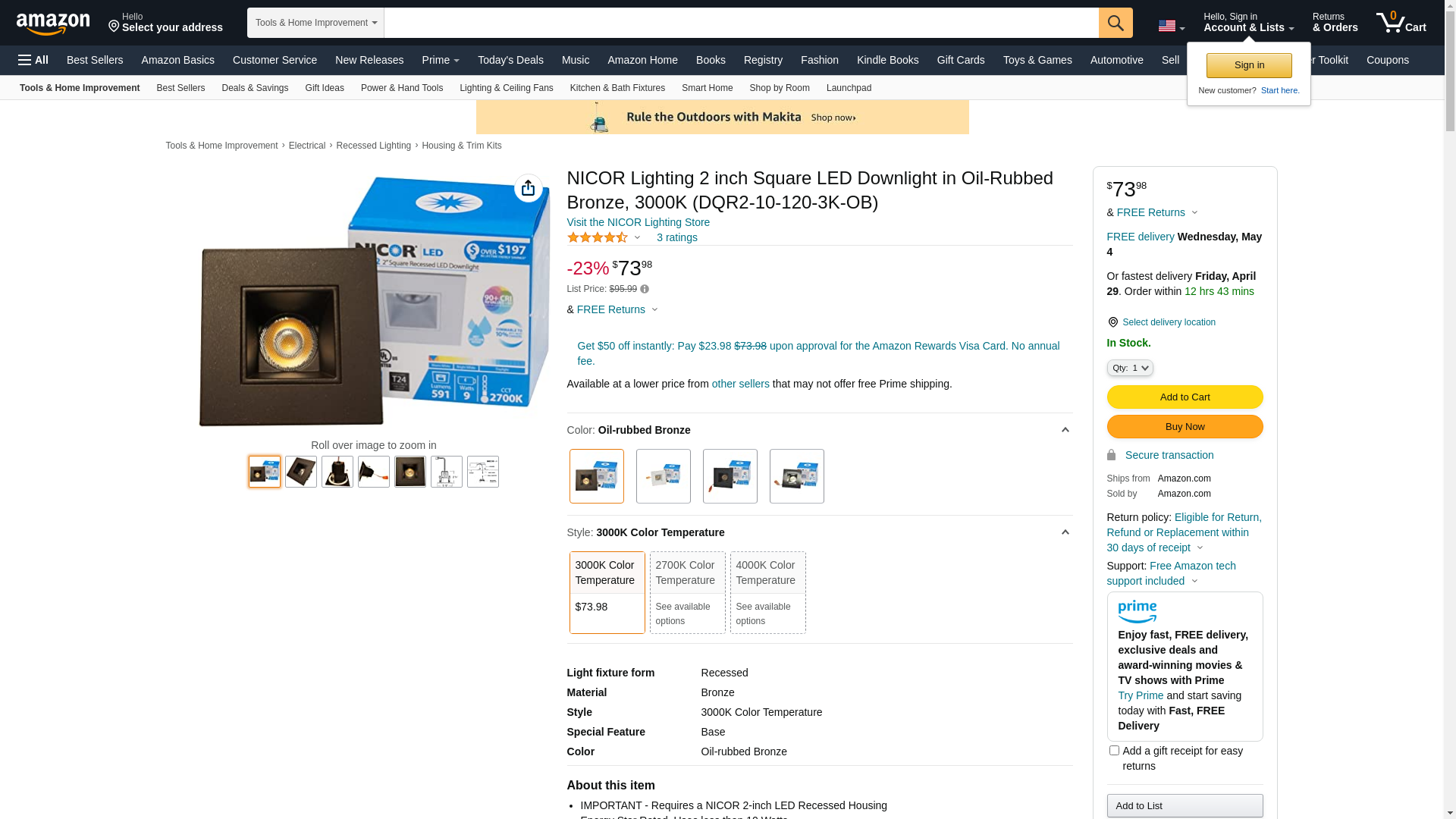 ![]() Lighting Supply | DQR2-10-120-3K-OB | 1 | 1 | 1 @ $87.39 |