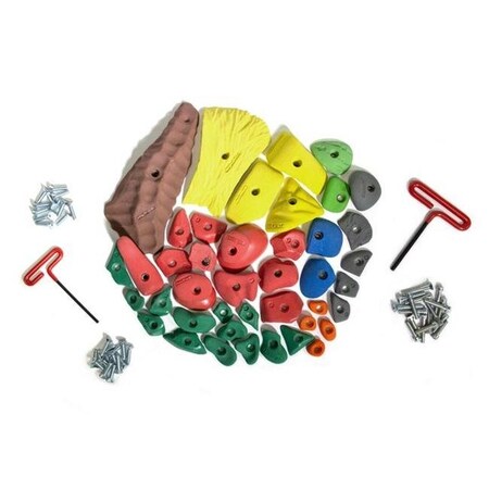 This start up set includes 42 of Nicros' polyester resin holds in varying sizes. Set also includes a7/32" and 5/16" T-Style Allen Wrench. Includes bolts for holds. Material: Polyester Resin. Difficulty: Multiple. Size: Multiple. Holds in Set: 42.
