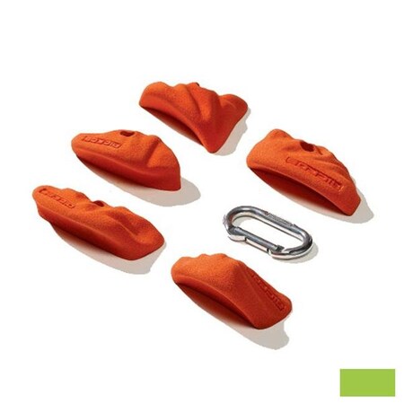 This simple set of five jugs is a great addition for your wall. The lines and curves add style to an otherwise simple set of positive holds. Bolt Type: Versa Center. Material: Polyester Resin. Difficulty: Beginner. Size: Medium. Holds in Set: 5. Color: Green.