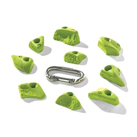 These dual-textured micros are perfect for training your fingers for climbing on granite. While some are multi-directional, the dual-texture on each bit is meant to confuse you making this set a favorite with route setters. Bolt Type: Flat Head. Material: Polyester Resin. Difficulty: Intermediate. Size: Micro. Holds in Set: 9. Color: Green.