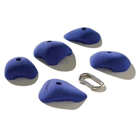 These devious incuts look like basic cobbles but their overall look is deceiving. Rotate them slightly on the wall, and the best usable feature will be harder to find. Bolt Type: Capscrew. Material: Polyester Resin. Difficulty: Intermediate. Size: Medium. Holds in Set: 5. Color: Royal Blue.