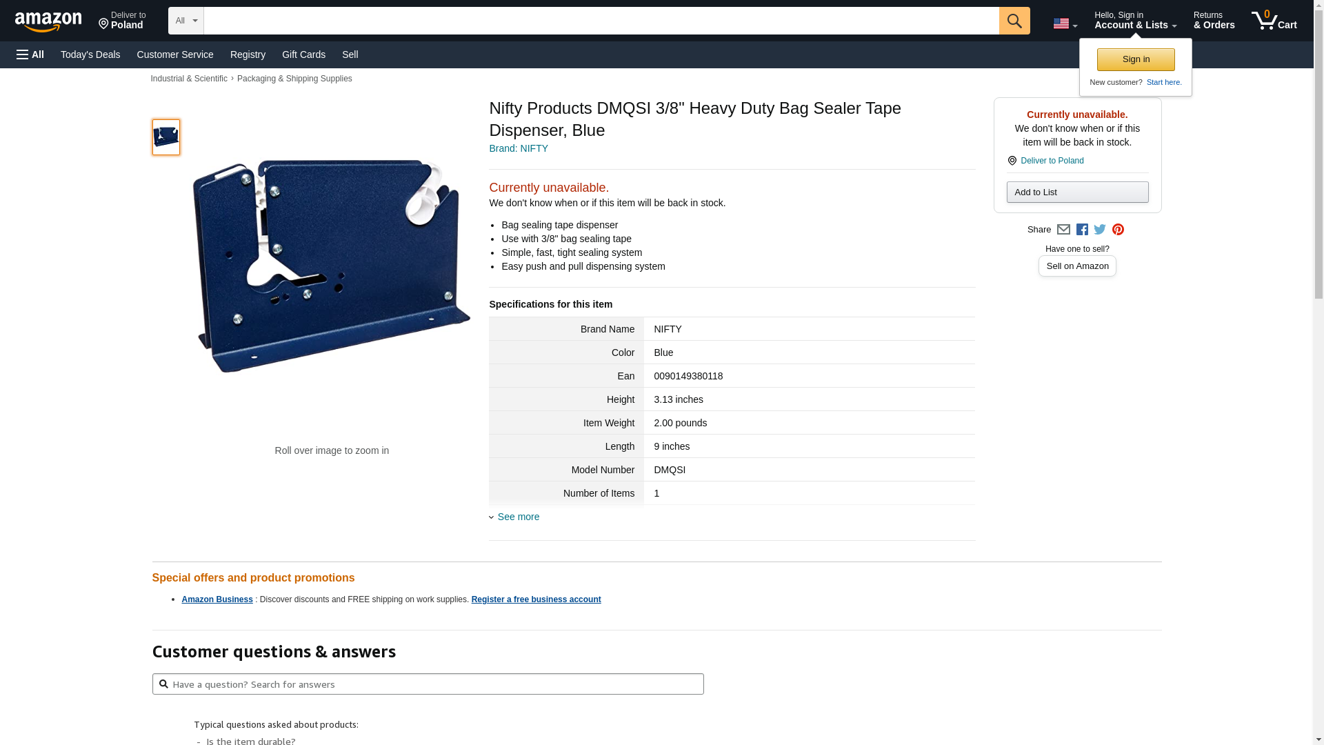Nifty Products DMQSI 3/8" Heavy Duty Bag Sealer Tape Dispenser, Blue