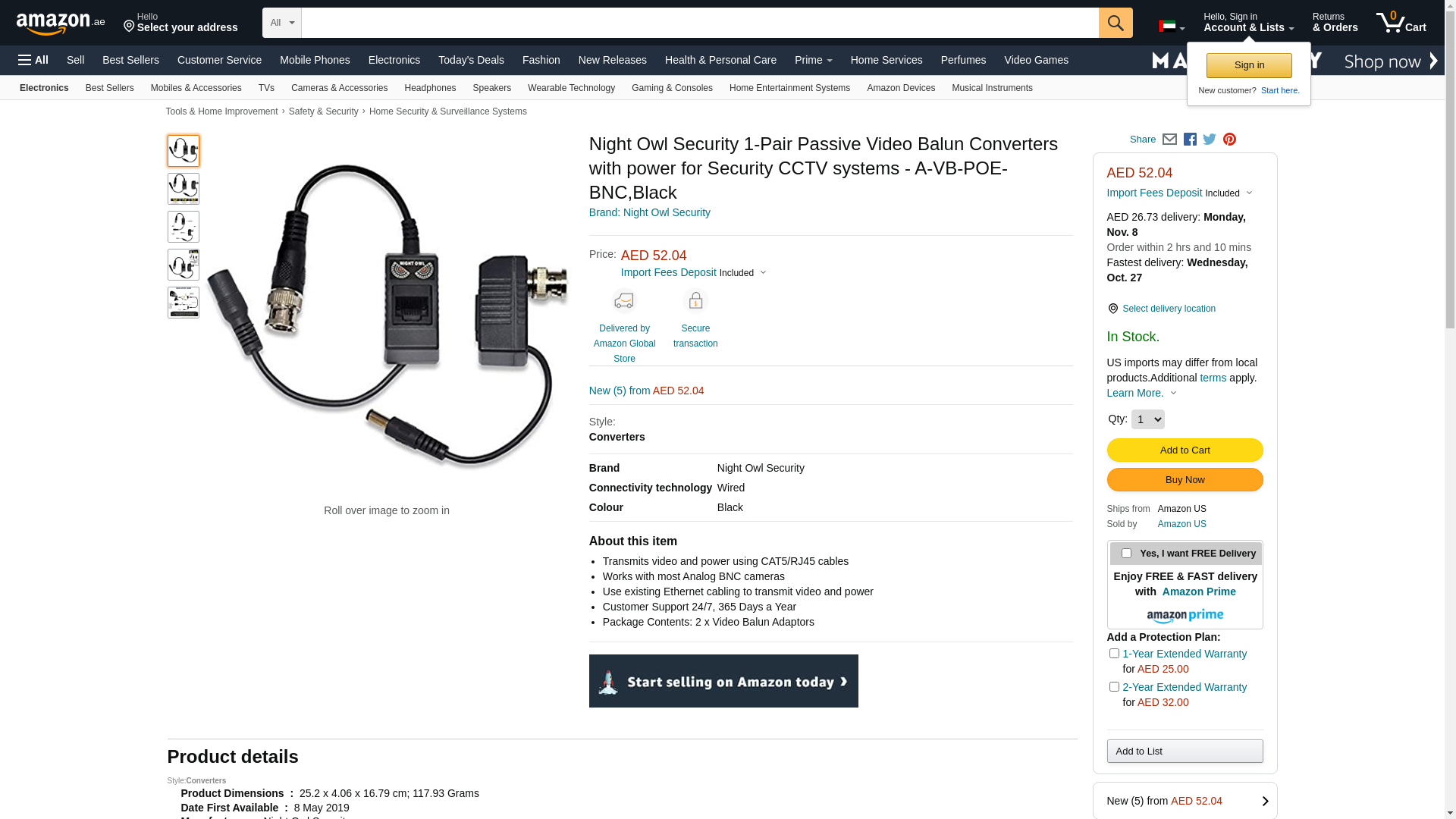 Night Owl Security 1-Pair Passive Video Balun Converters with power for Security CCTV systems - A-VB-POE-BNC,Black