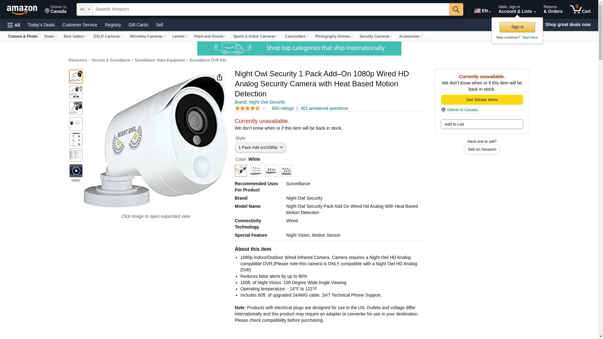 | Feature | 1080p Indoor/Outdoor Wired Infrared Camera. Camera requires a Night Owl HD Analog compatible DVR.(Please note-this camera is ONLY compatible with a Night Owl HD Analog DVR) |