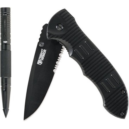 <p class="itemDesc">Night Armors Tactical Penlight and knife combo features two of our high quality products for self defense or emergency use. The Tactical Penlight is made of durable and lightweight aircraft grade aluminum and can be used as a writing instrument, flashlight, self defense tool or a glass breaker. The LED bulb lasts a lifetime and never needs replacing. Our Tactical Knife has a handle made from 6061 anodized aluminum. the blade is 440 stainless steel with a drop point and partially serrated edge and quick one handed opening feature</p> <div class="itemFeatures"> <h3>Features</h3> <ul> <li>Tactical Penlight: Glass breaker for home or auto</li> <li>Self defense tool</li> <li>LED lasts a lifetime. Never needs replacing</li> <li>Tactical Knife: Drop point tip with partially serrated edge made from 440 stainless steel</li> <li>Heavy duty anodized 6061 aluminum handle with one handed opening</li> </ul> </div>