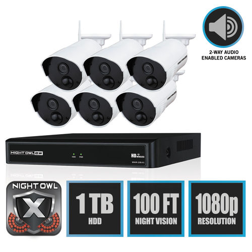 Night Owl WNVR201-88P-B 8 Channel 1080p Wireless Smart Security Hub with 8 x 1080p Wireless Infrared IP Cameras and 1 TB HDD, White