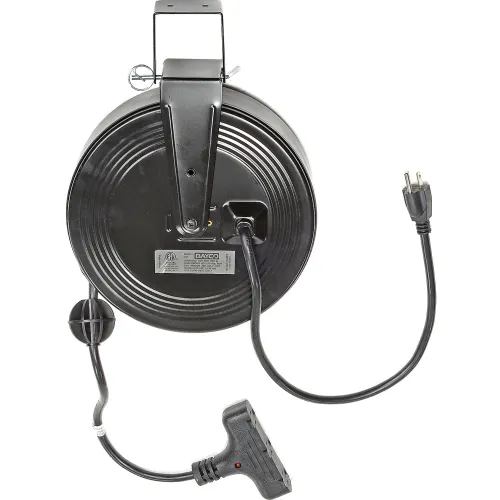 Bayco® SL-801 Triple Tap Extension Cord, Retractable Reel, 30'L Cord, 14/3 GA, BLK