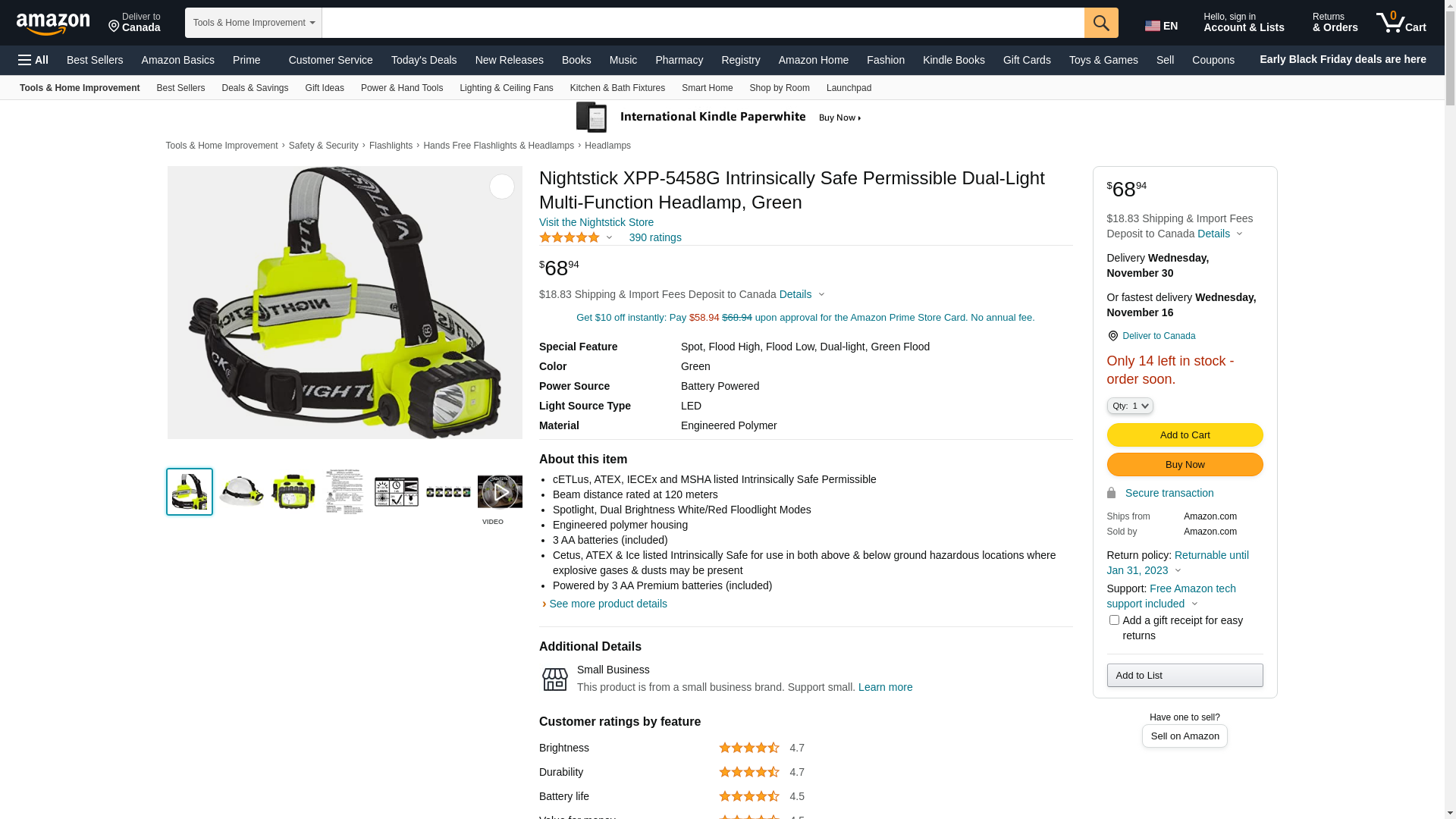 Nightstick XPP-5458G Intrinsically Safe Permissible Dual-Light Multi-Function Headlamp, Green