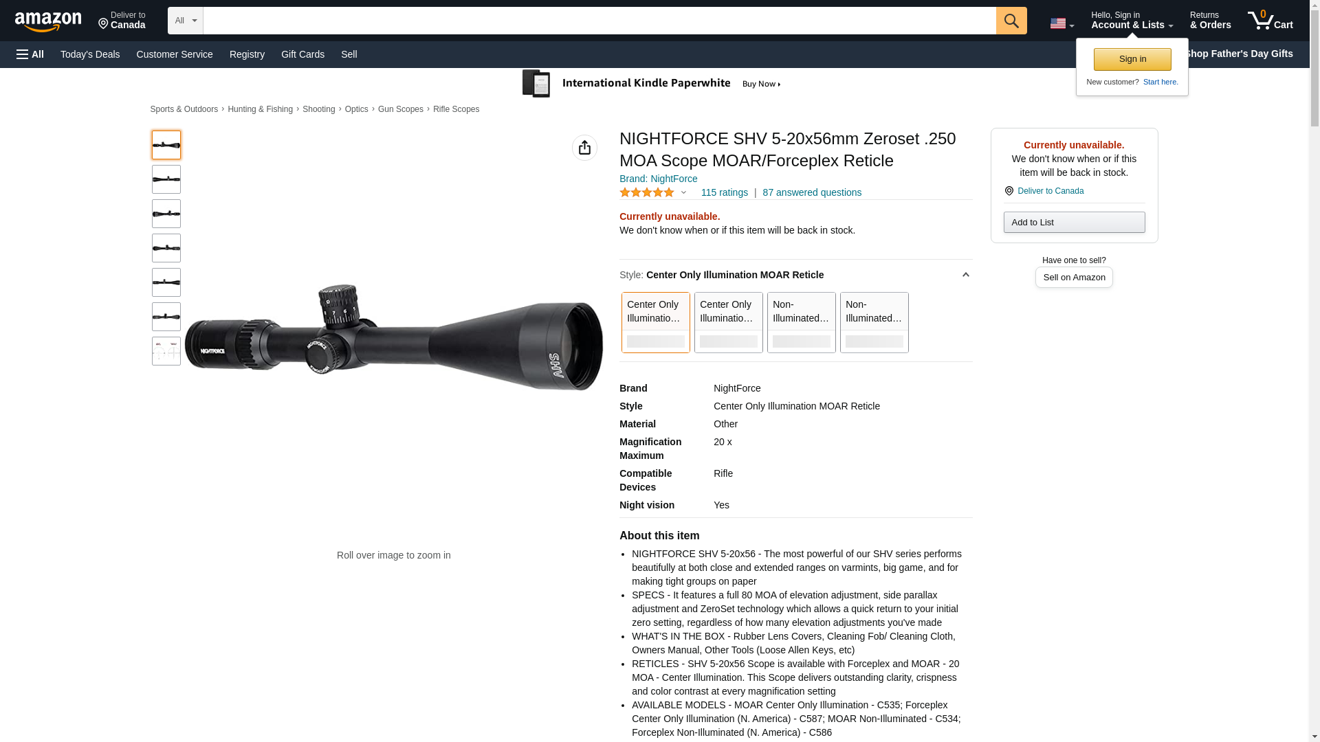 | Feature | This Item Includes: Nightforce Optics 5-20x56 SHV Second Plane Riflescope with MOAR Reticle - Nightforce Optics Lifetime Limited Warranty |