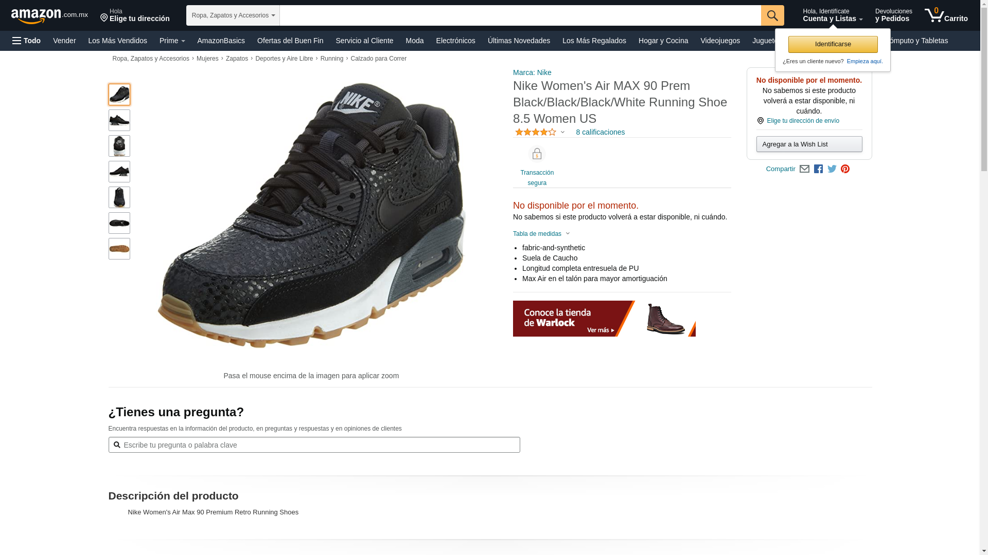 Nike Womens Air Max 90 Prem Black/Black/Black/White Running Shoe 8 Women US