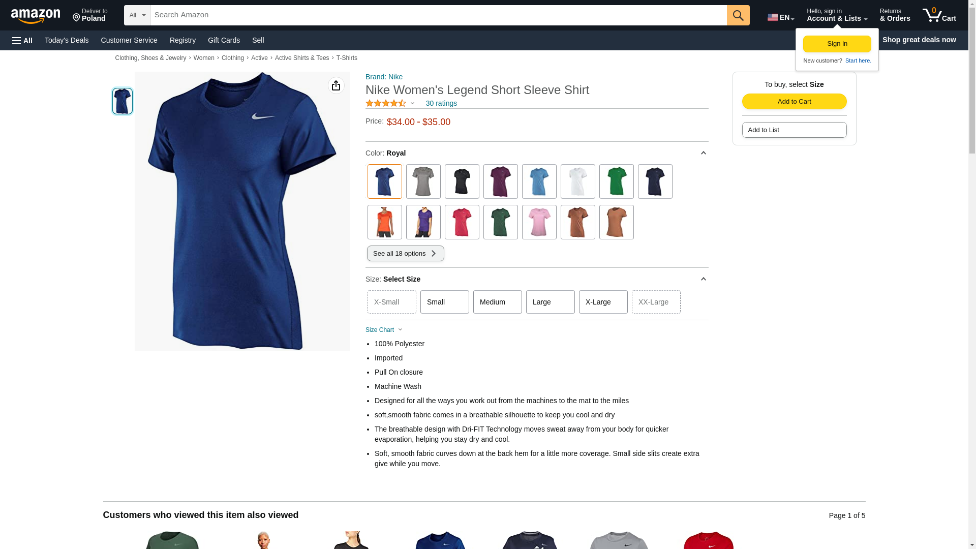 | Feature | "Nike Women's Dri-Fit Legend Short Sleeve T-Shirt Dri-FIT fabric wicks moisture away. Ideal for a variety of training conditions. Neck tape added for durability and comfort. Swoosh at upper left chest. 100% polyester. Imported. Women's Sizes: $size$. Colors: $color$." |