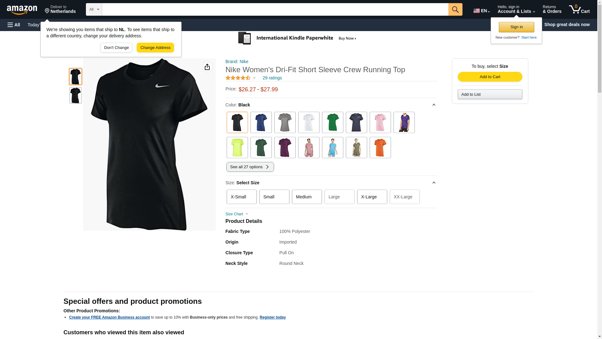 <strong>Nike Women's Dri-Fit Legend Short Sleeve T-Shirt</strong><BR><BR>Dri-FIT fabric wicks moisture away. Ideal for a variety of training conditions. Neck tape added for durability and comfort. Swoosh at upper left chest. 100% polyester. Imported. <BR><BR>Women's Sizes: $size$.<BR>Colors: $color$.<BR>