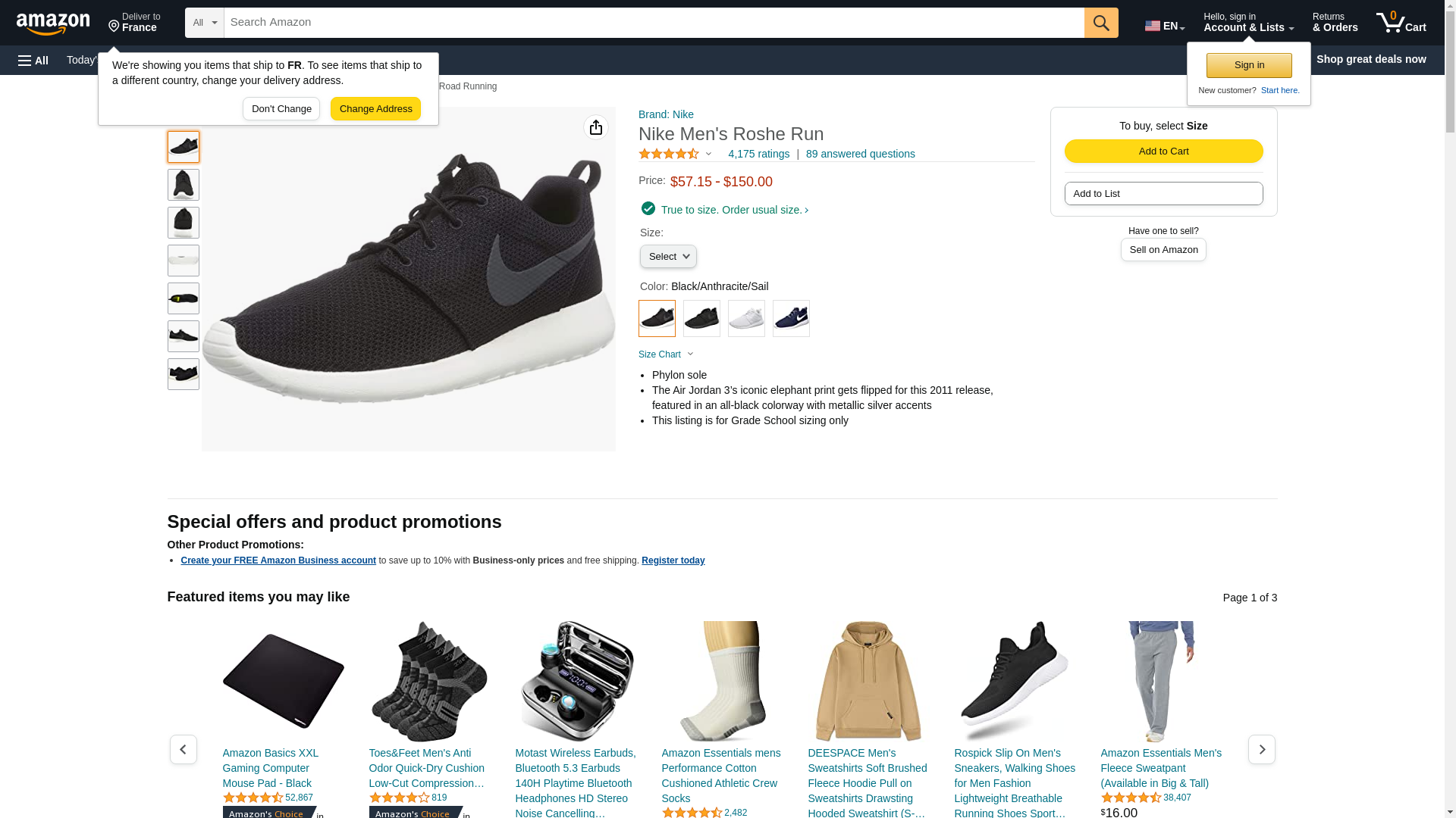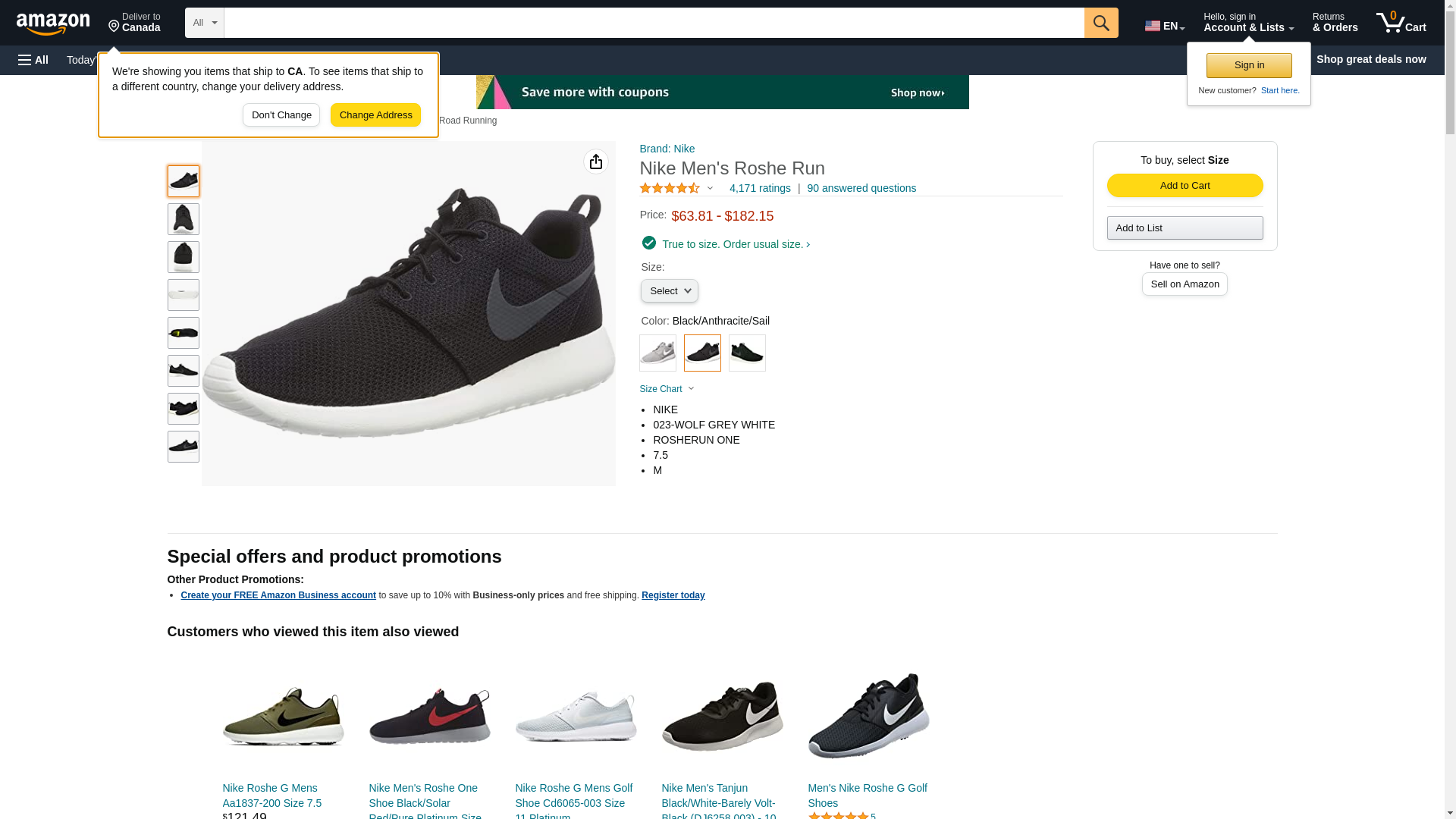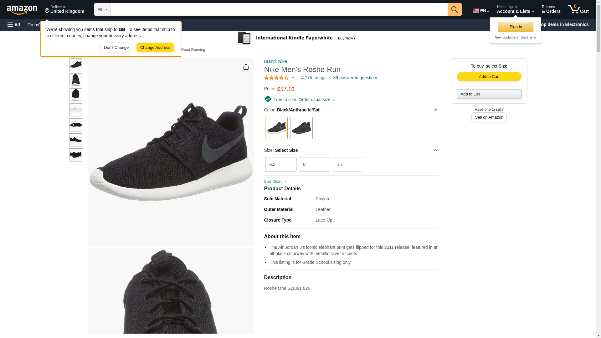 Nike Men's Roshe Run Black/Anthracite-Sail,8 D(M) US