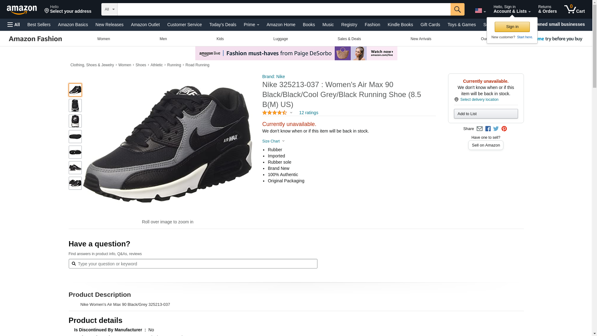 Nike 325213-037 : Women's Air Max 90 Black/Black/Cool Grey/Black Running Shoe (8.5 B(M) US)