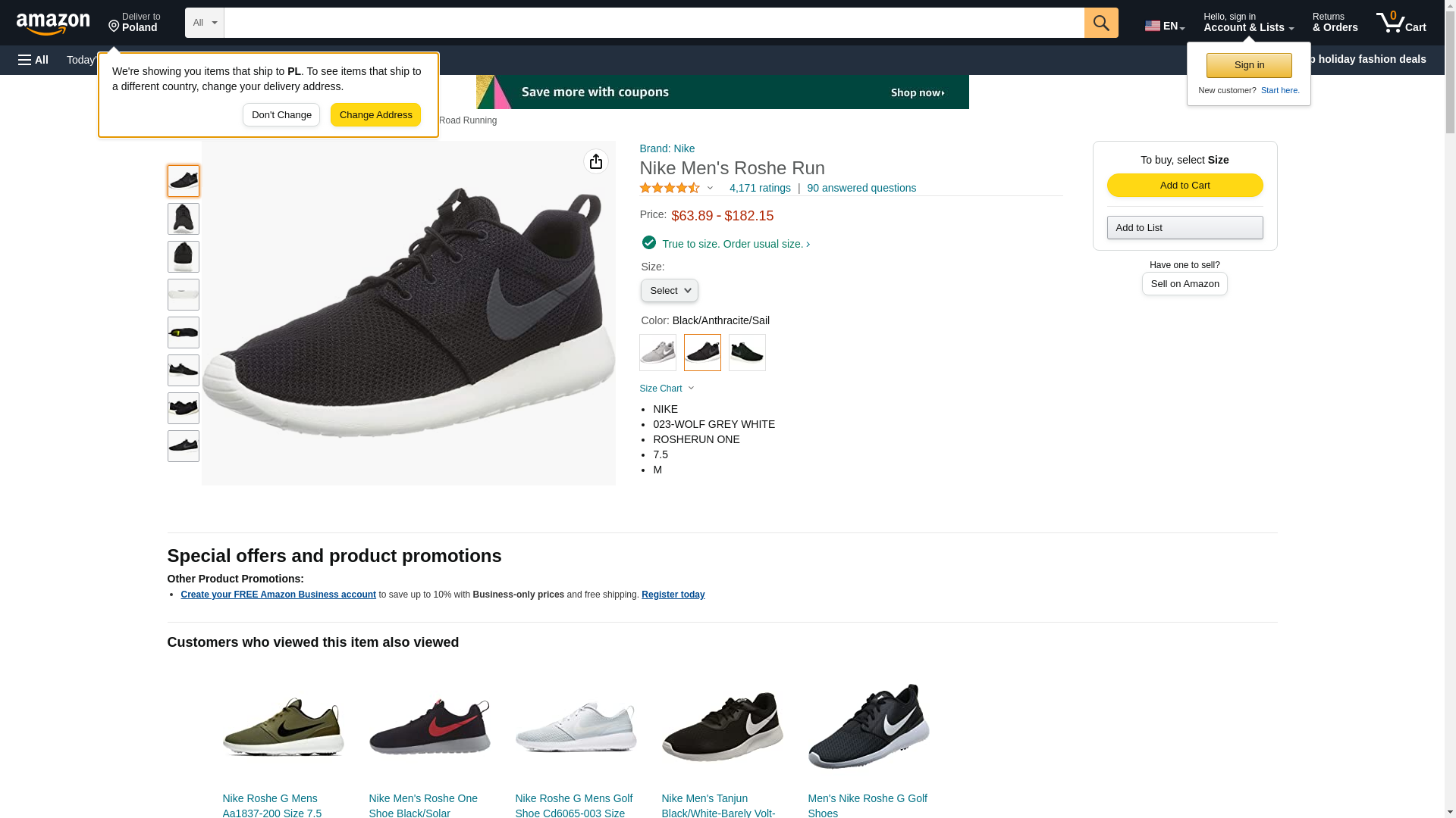 Nike Mens Rosherun Black/Anthracite/Sail Running Shoe 10.5 Men US