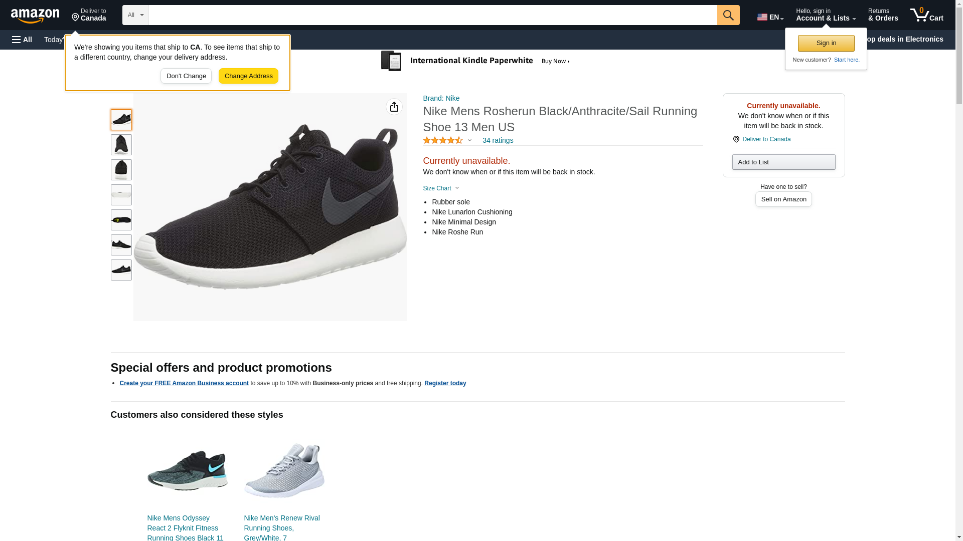 Nike Men's Rosherun, BLACK/ANTHRACITE-SAIL, Size 11.5