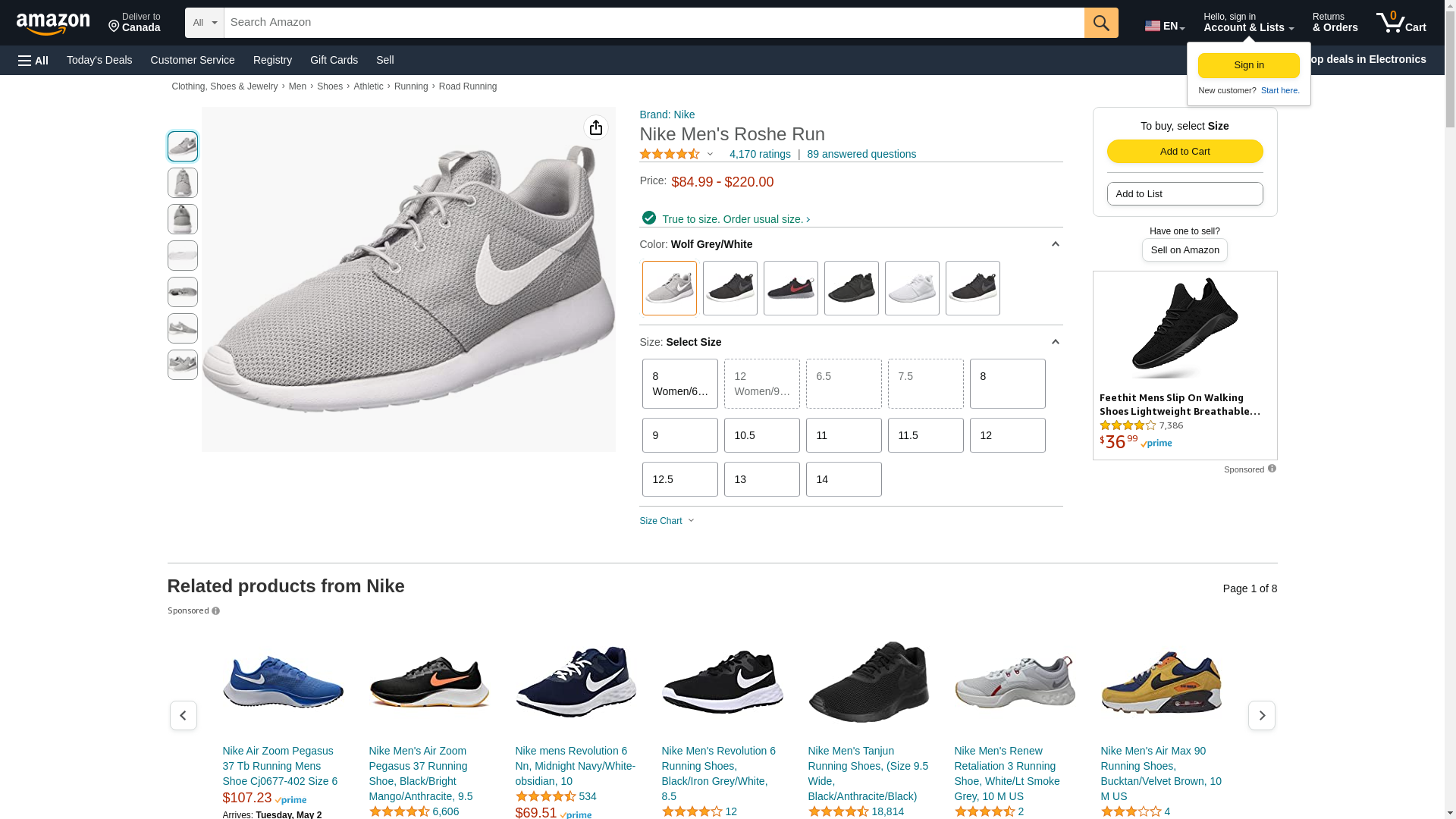 Nike Men's Rosherun, WOLF GREY/WHITE, Size 11