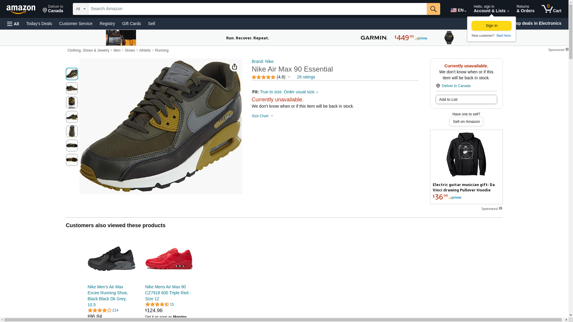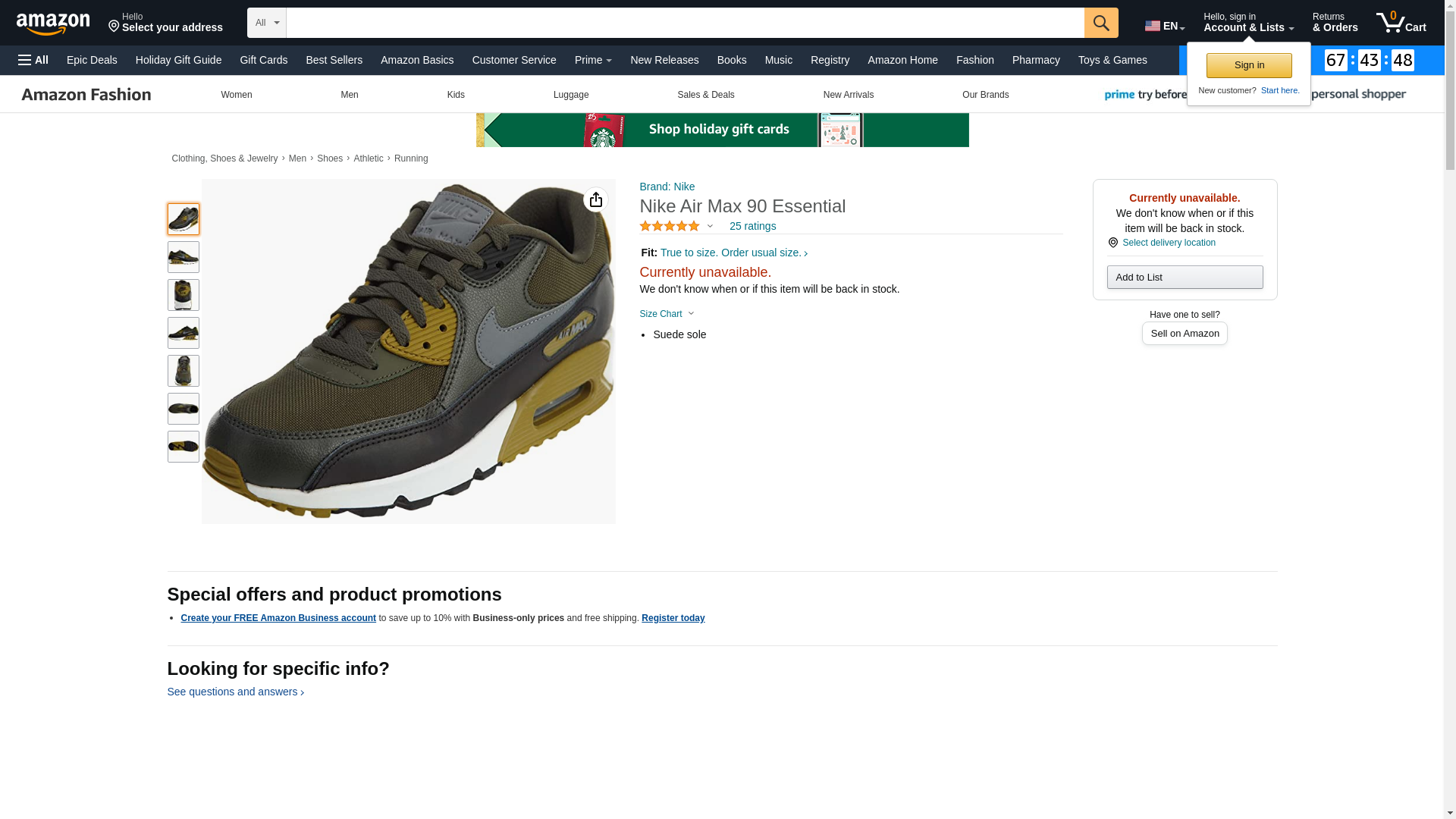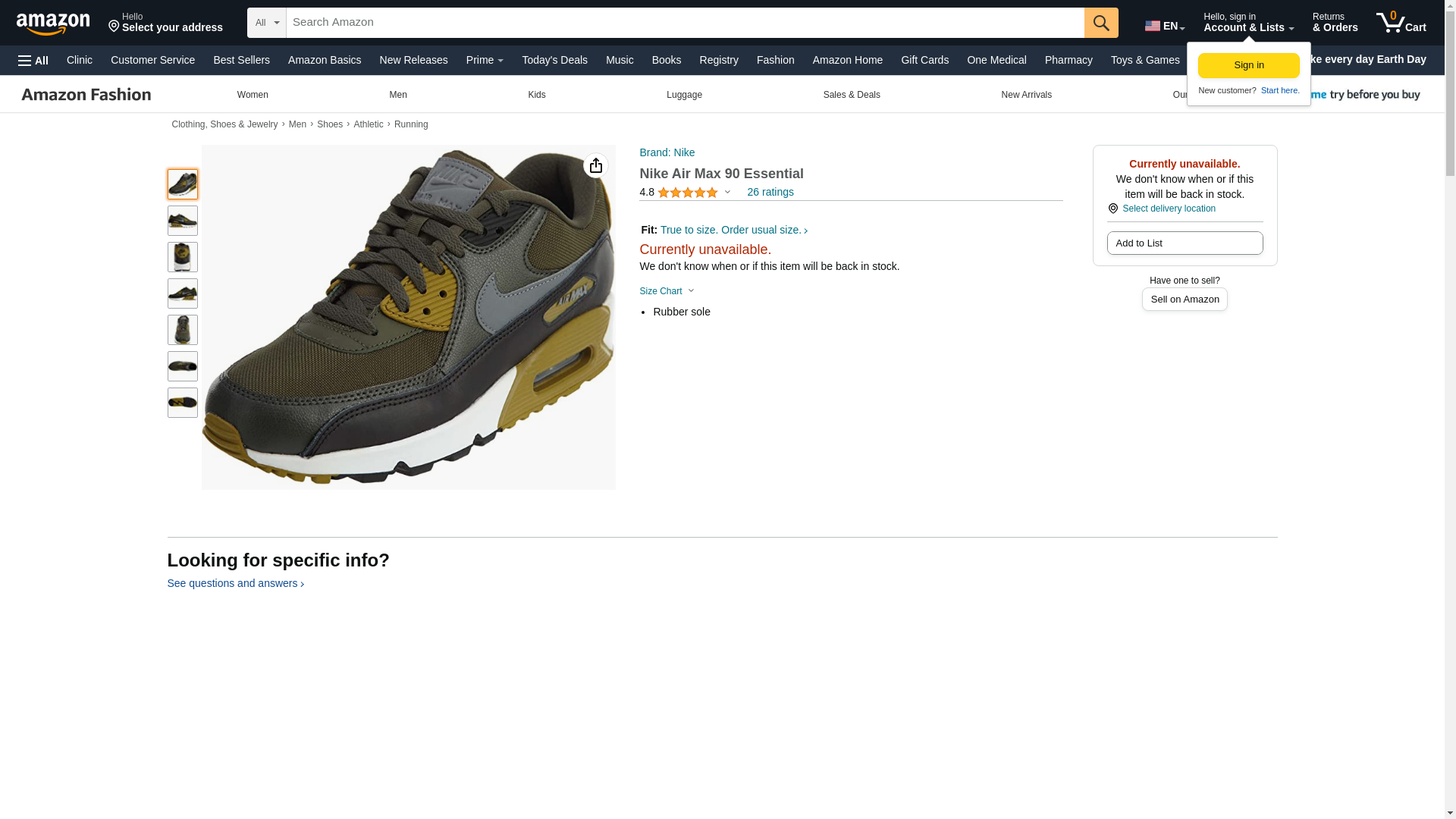 NIKE Mens Air Max 90 Essential Running Shoes Cargo Khaki/Cool Grey/Black 537384-307 Size 11.5