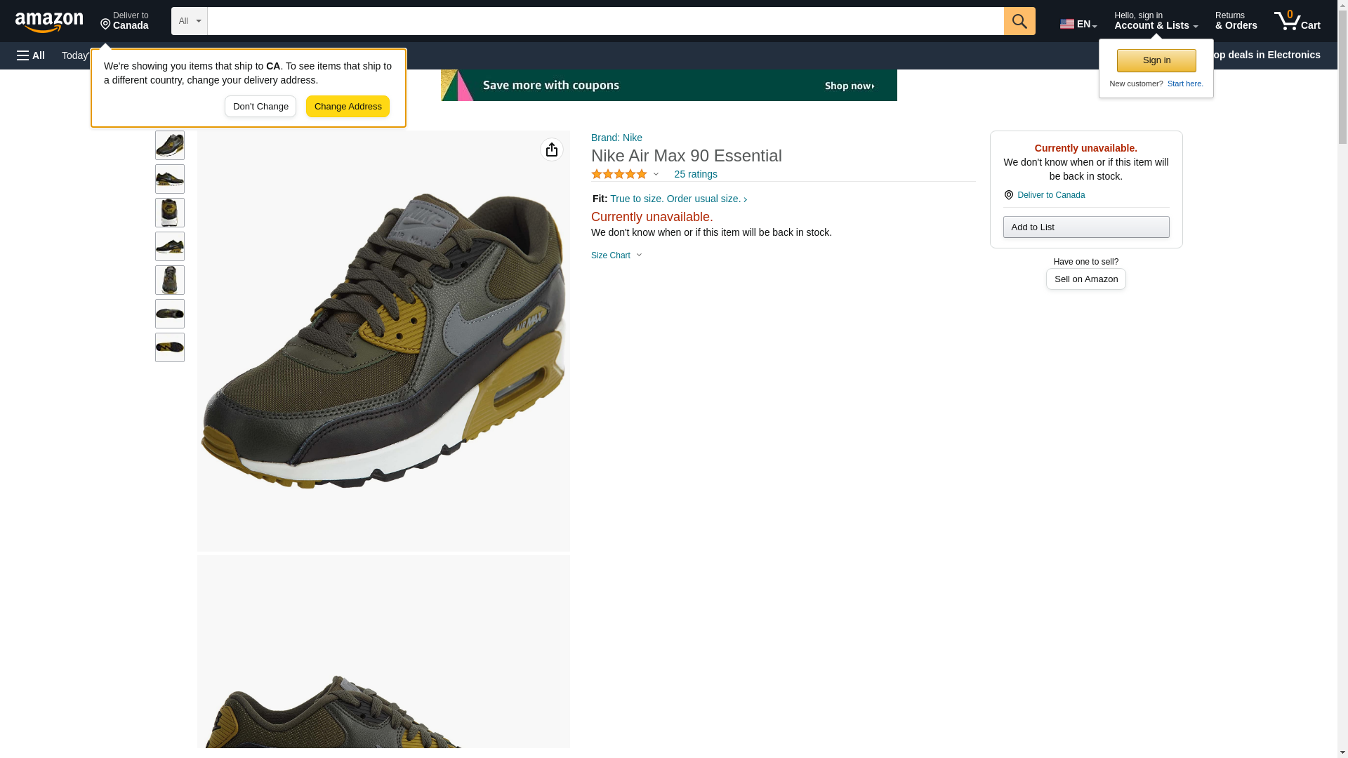 NIKE Air Max 90 Essential Mens Running Shoes, Cargo Khaki/Cool Grey/Black/Sequoia, 7.5 D(M) US