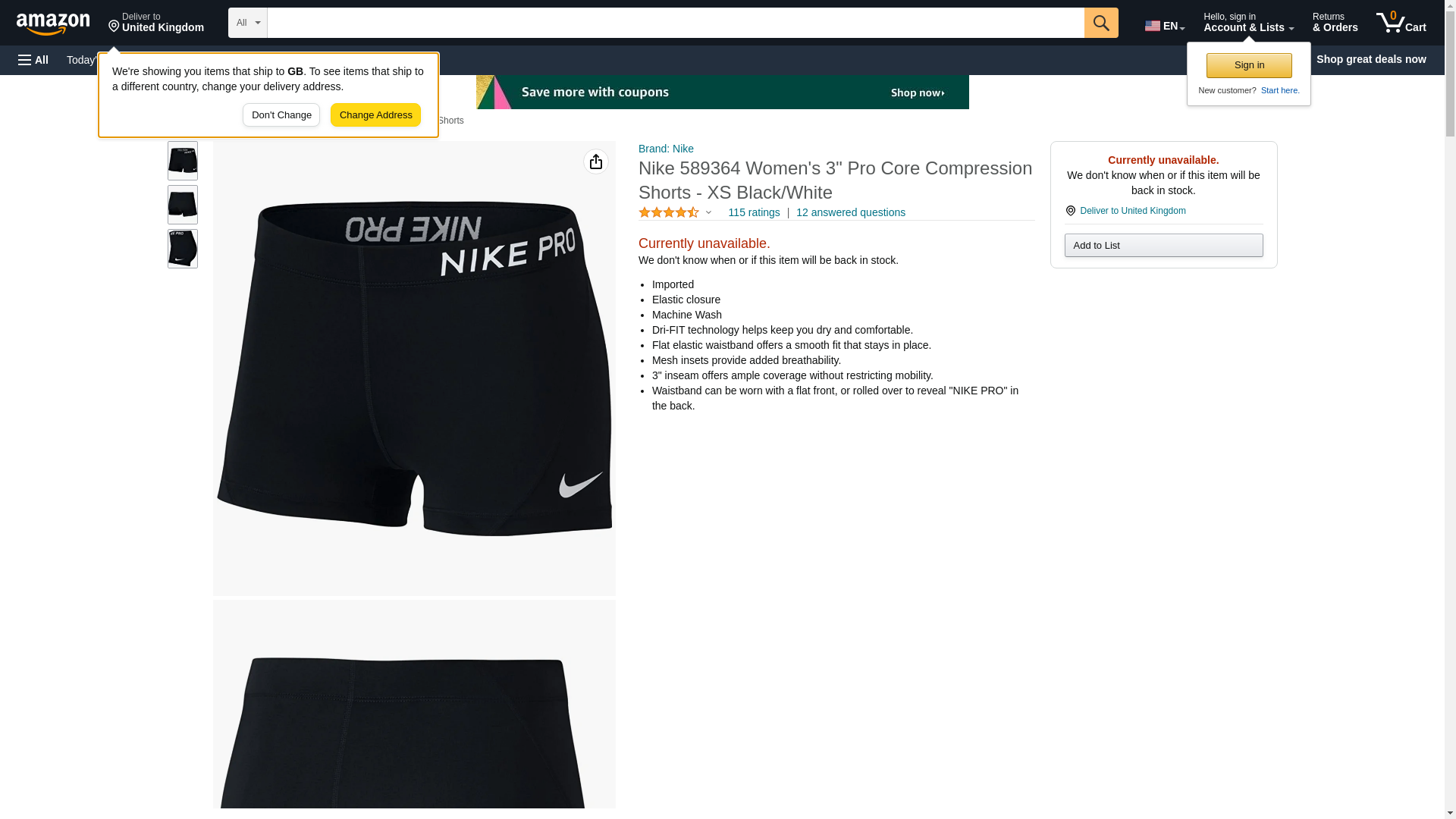 Nike 589364 Women's 3" Pro Core Compression Shorts - XS Black/White