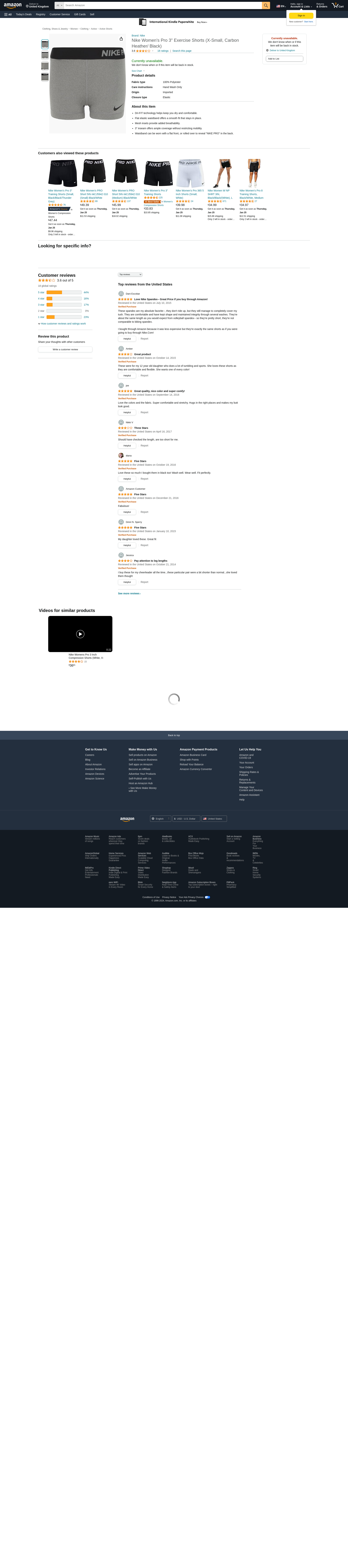 Nike Women's Pro 3" Exercise Shorts (Small, Carbon Heather/Black)