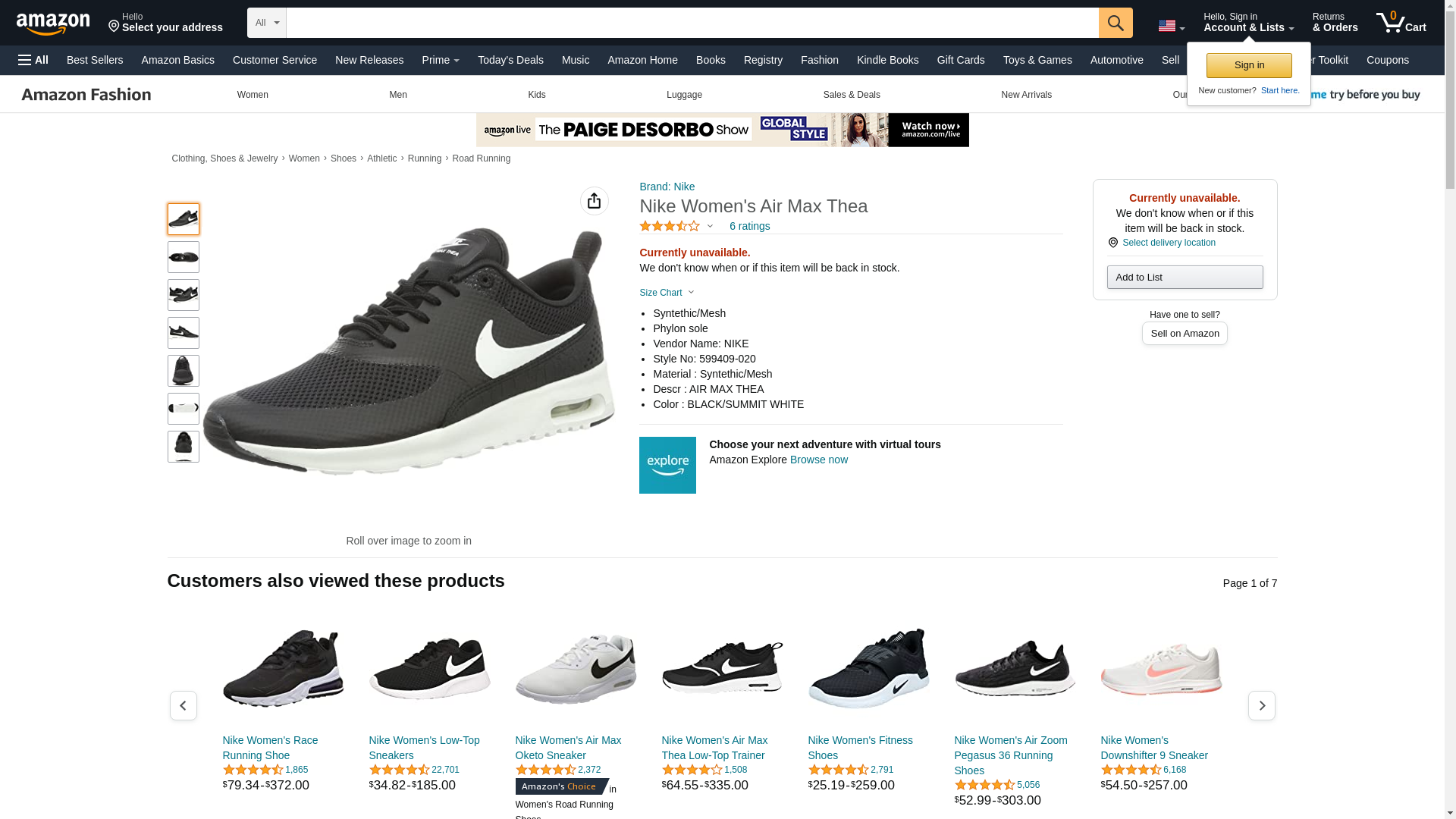NIKE Women's Air Max Thea Running Shoes (7.5 B(M) US)
