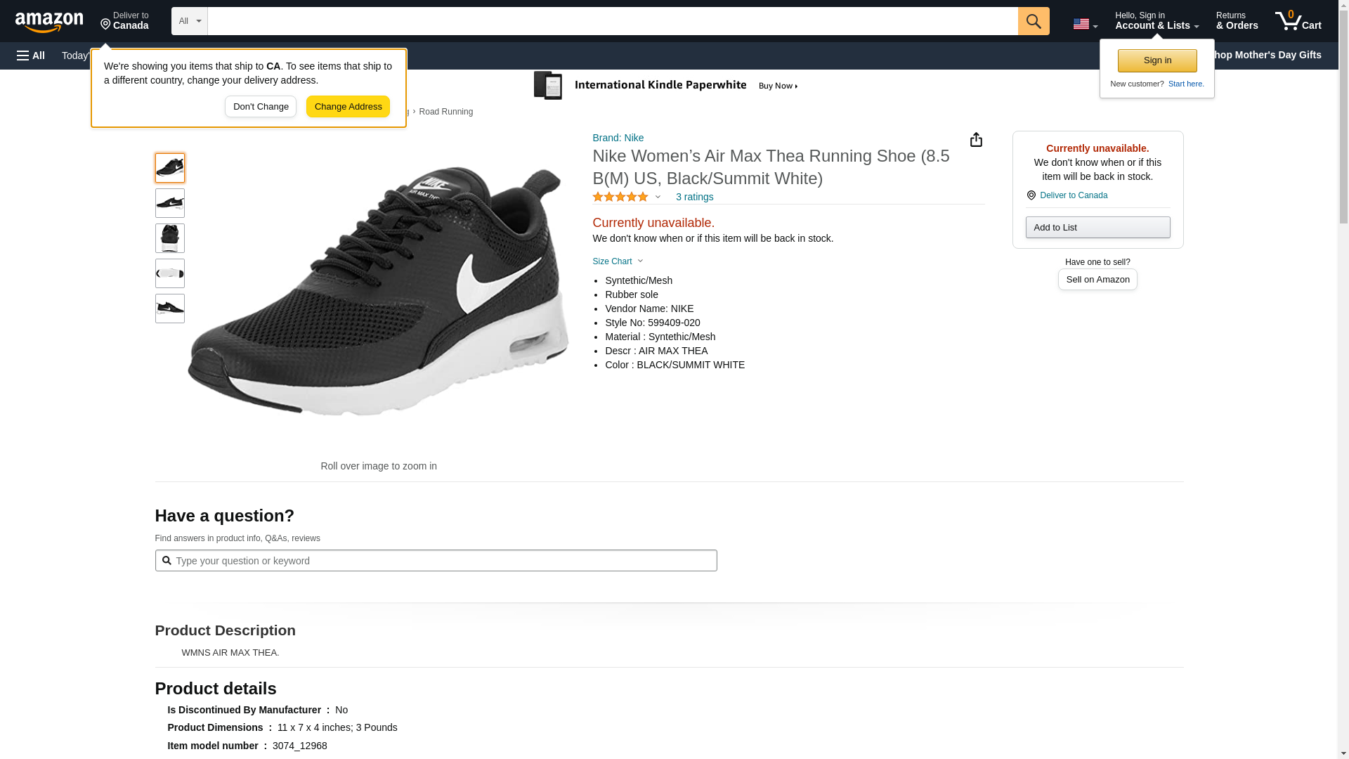 <b>Style Name:</b> Wmns Air Max Thea <br /> <b>Color:</b> Black/Summit White <br /> <b>Condition:</b> New with box <br /> <b>Condition Notes:</b> Brand New with original box. 100% Authentic. <br /> <b>Style Code:</b> 599409-020