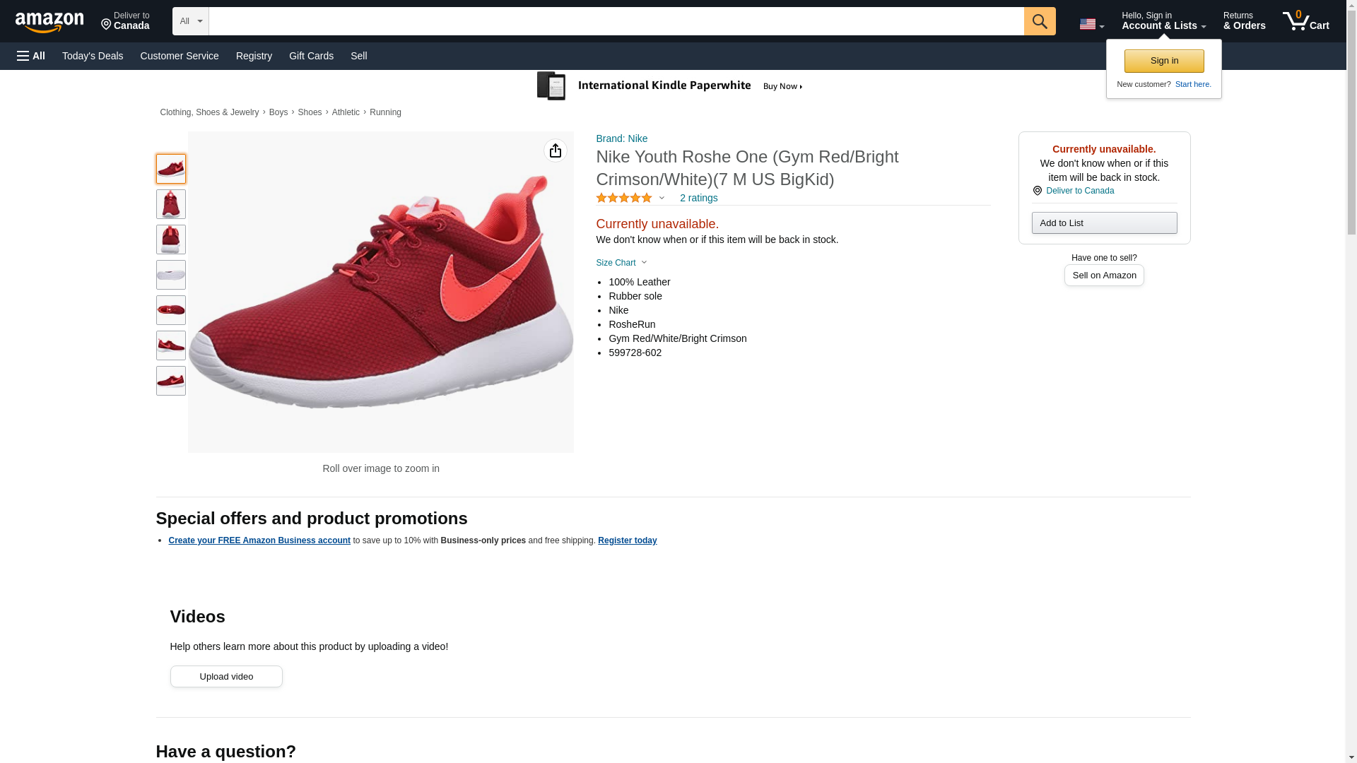 Nike Rosherun (GS) Boys Running Shoes 599728-602 Gym Red Bright Crimson-White 4.5 M US