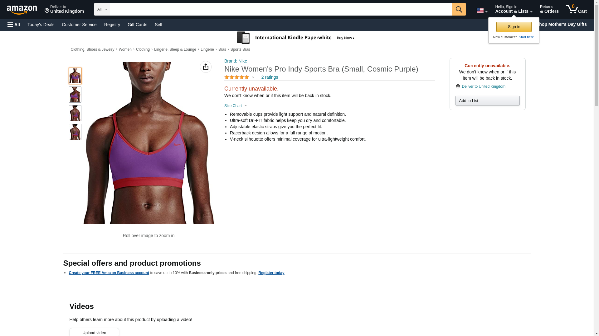 "Nike Women's Lightweight Wireless Sports Bra Purple XS"