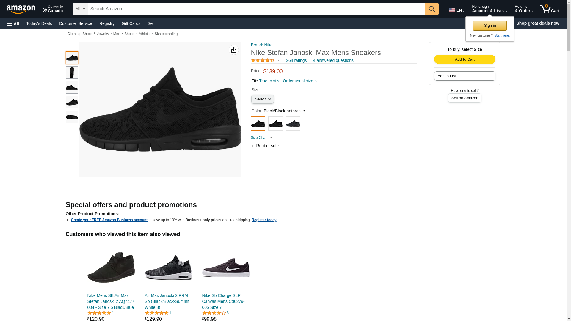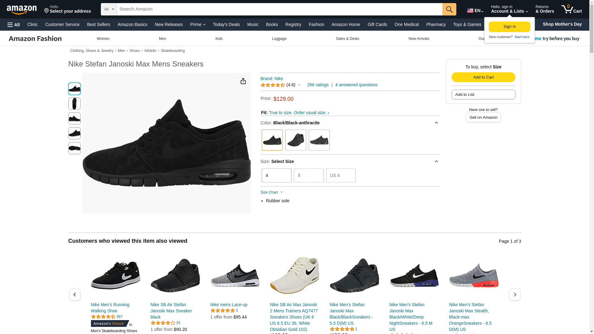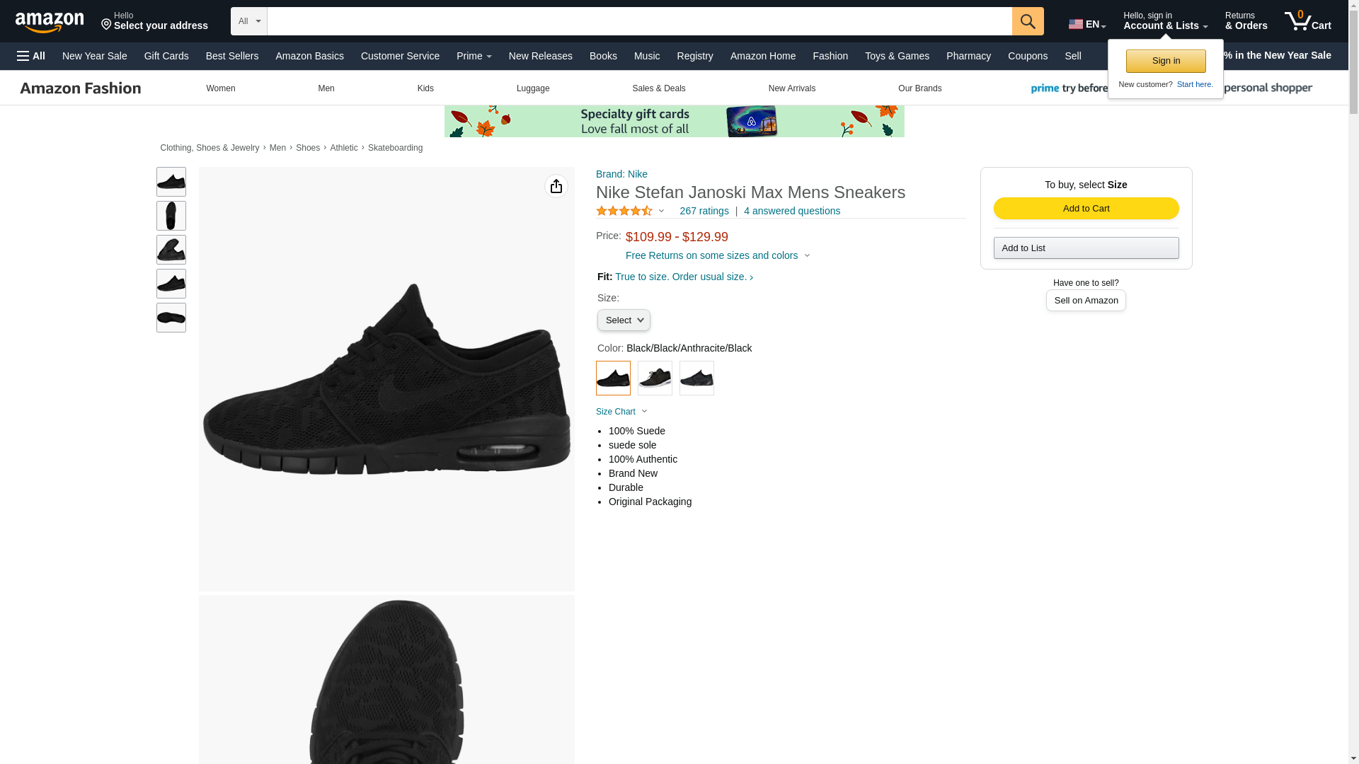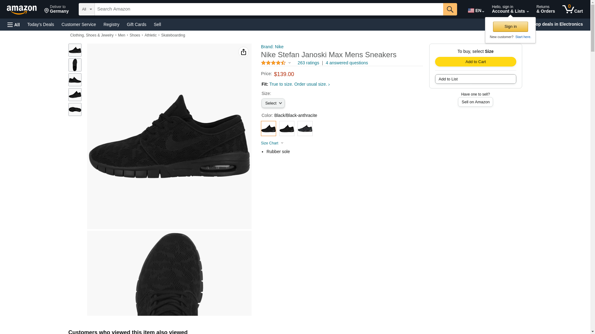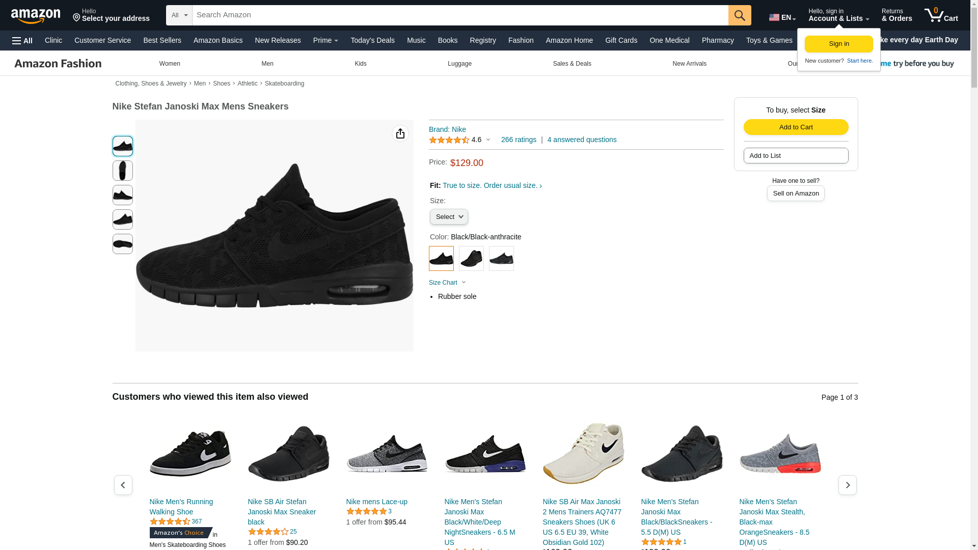 NIKE Stefan Janoski MAX Mens Fashion-Sneakers 631303-099_11.5 - Black/Black-Anthracite
