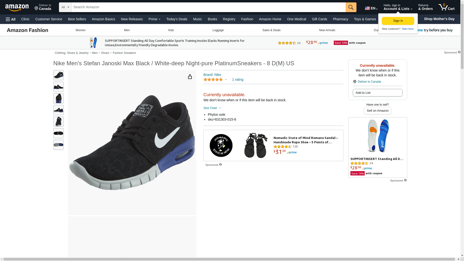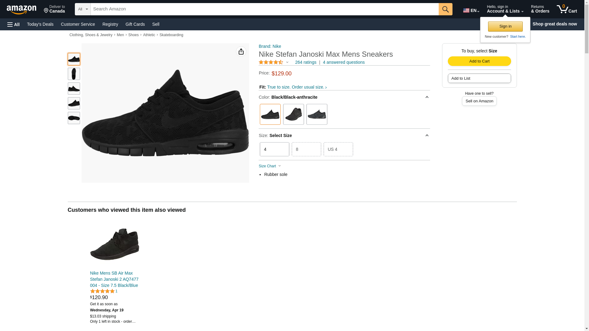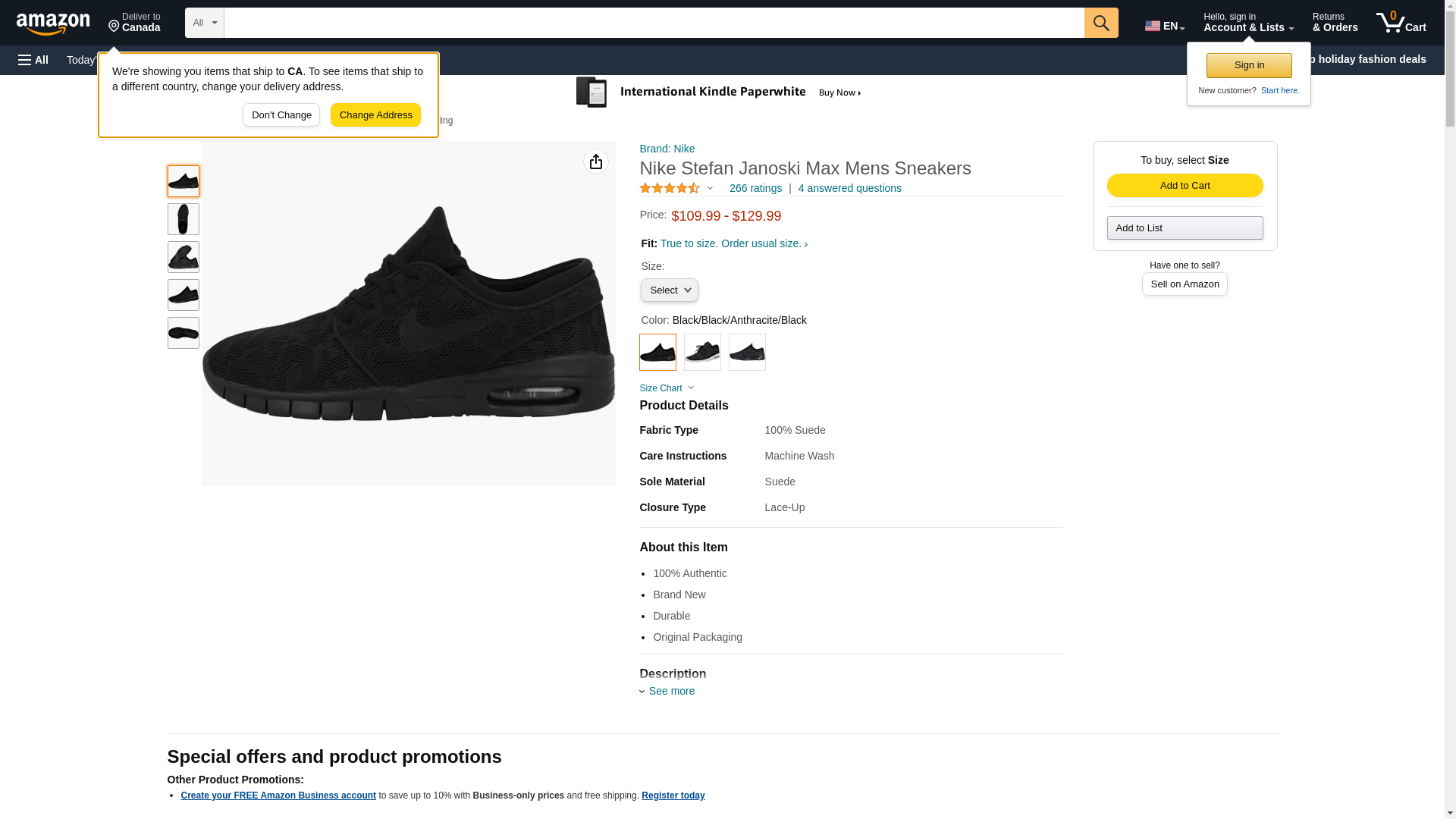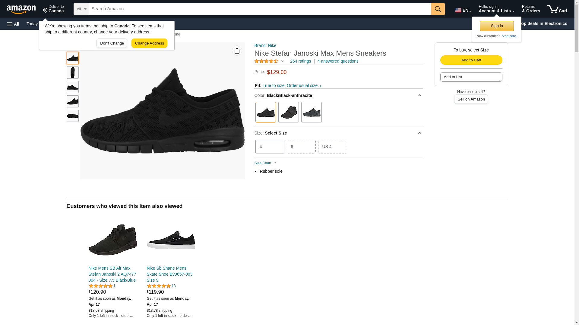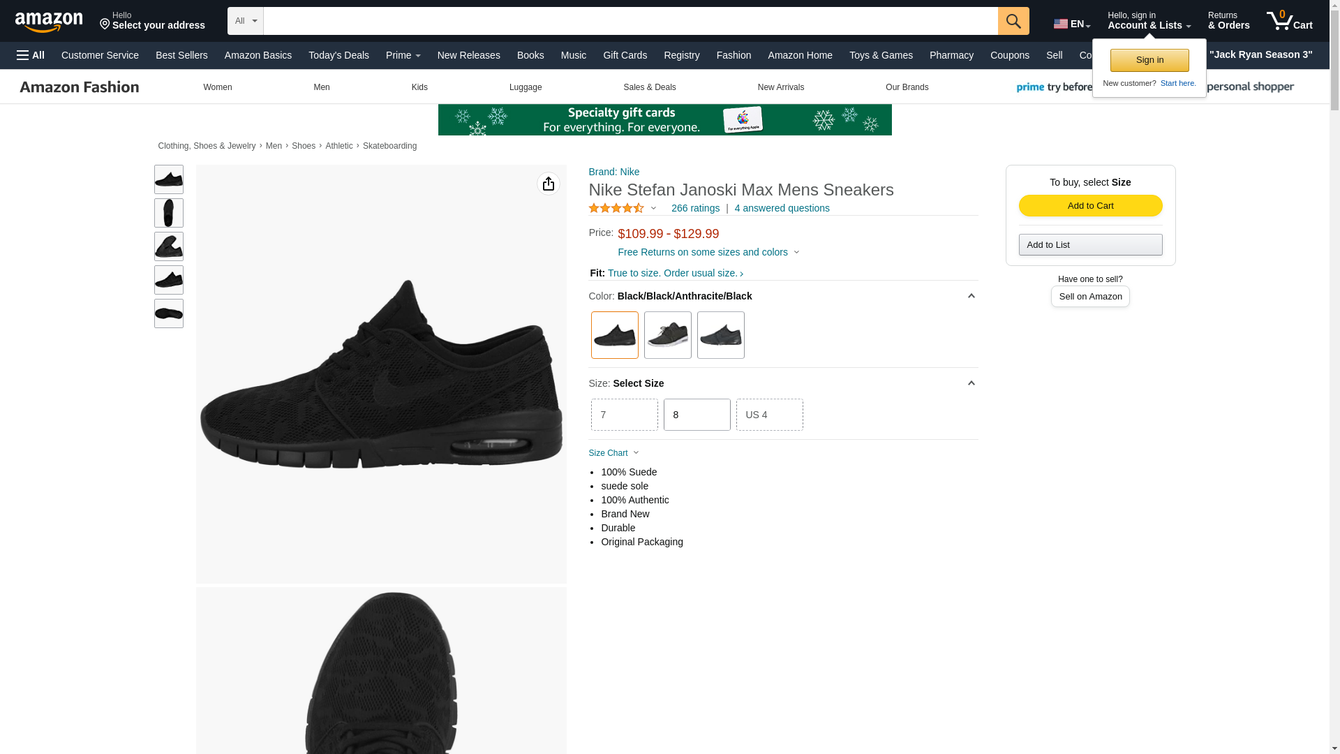NIKE Stefan Janoski MAX Mens Fashion-Sneakers 631303-099_11.5 - Black/Black-Anthracite