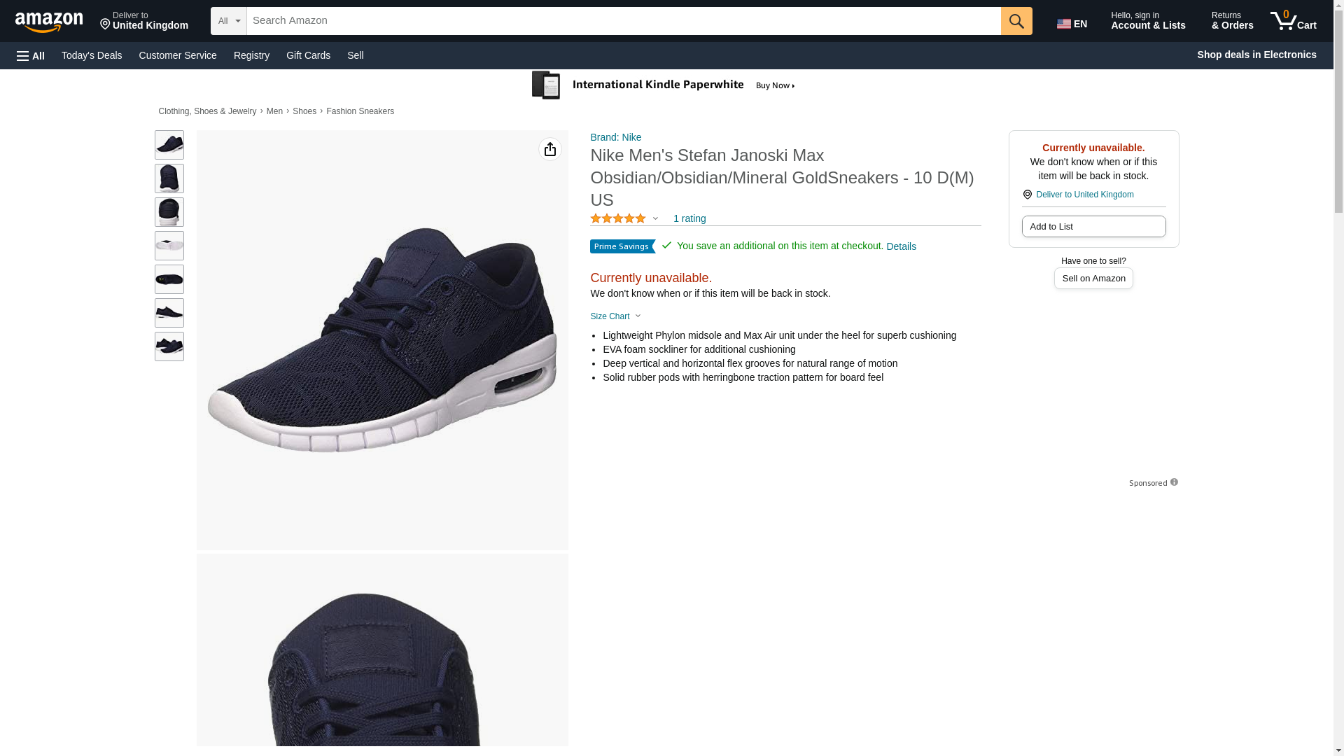 Nike Men's Stefan Janoski Max Obsidian/Obsidian/Mineral GoldSneakers - 9.5 D(M) US